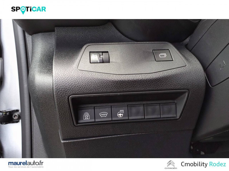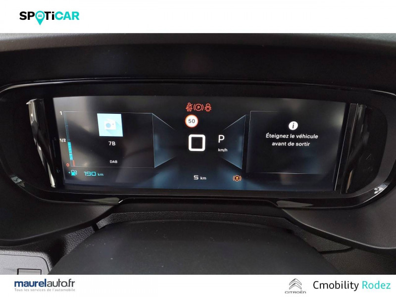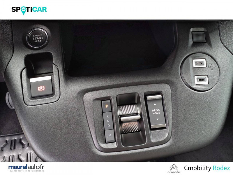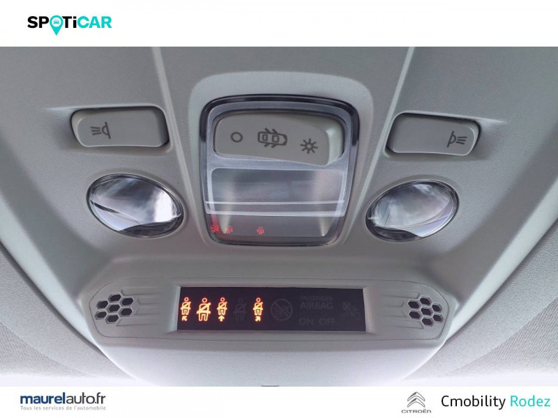 3 sièges individuels en rang 2, escamotables avec fixation Isofix / ABS, AFU, ESP, ESC, ASR / Airbags frontaux conducteurs et passager AV, latéraux AV et rideaux / Allumage automatique des feux de croisement et commutation automatique en feux de route / Barres de toit longitudinales Noir Brillant / Caméra de recul avec Top Rear Vision / Citroën Connect SOS & assistance / Combiné numérique couleur 10" / Coques de rétroviseurs extérieurs noires vernies / Détecteur de sous-gonflage / Essuie-vitre AV automatique (capteur de pluie) / Feux de jour et projecteurs AV Ecoled / Frein de stationnement électrique / Jantes alliage 16" avec pneumatiques 205/60/R16 96H / Lève-vitres AV et rang 2 électriques et séquentiels / Lunette AR ouvrante et surteintée / Pack Safety Alerte risque collision & Freinage d'urgence, Lecture des panneaux de vitesse, Détection & Alerte somnolence, Alerte franchissement de ligne avec correction / Pavillon avec capucine / Poignées de portes extérieures couleur caisse / Radio numérique DAB avec écran tactile couleur 10'' HD, Bluetooth, Mirror Screen sans fil (Android Auto et Apple CarPlay) / Rangement fermé derrière le combiné conducteur / Rangements côté passager: Boîte à gants Top Box réfrigérée, Boîte à gants inférieure fermée / Sécurité enfants électrique / Siège conducteur avec réglage lombaire et accoudoir / Siège passager AV rabattable avec accoudoir / Surteintage des vitrages ( Rang 2, Rang 3) / Tablette AR cache-bagages à 2 positions / Tablette aviation au dos des sièges AV / Vitres du rang 3 fixes / Vitres entrebaillantes en rang 2 / Volet AR avec vitre fixe, dégivrage et essuie-vitre