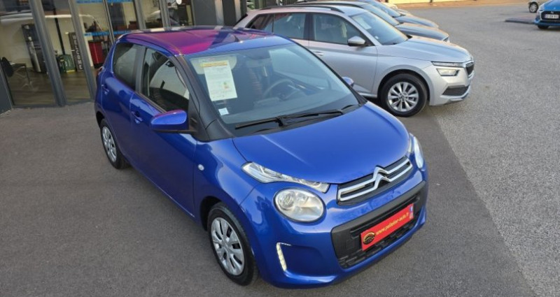 Citroën C1 Airscape VTi 72 SetS Feel berline, bleu, 3 cv, 5 portes, première mise en circulation le 17/07/2019, garantie 3 mois. 4 places OPTIONS ET ÉQUIPEMENTS : Audio - Télécommunications : - Bluetooth - Prise audio usb Conduite : - limiteur de vitesse Extérieur : - Enjoliveurs 15 Comet - Feux diurnes à LED Intérieur : - Boîte à gants fermée - climatisation : manuelle - climatisation manuelle - direction assistée - fermeture centralisée - ordinateur de bord - réglages du volant : hauteur - siège conducteur réglable en hauteur - vitres avant éléctriques Pack : - Coques de rétroviseurs Noir Caldera - Pack Color Black - Pack Color C-Series - Poignées de portes couleur carroserie - Sieges arrières rabattable - appuis-tête arrière - volant réglable Sellerie : - Garnissage Tissu Zebra Red Sécurité : - Kit de dépannage provisoire de pneumatiques - ABS - Aide au demarrage en pente - ESP - aide au freinage d'urgence - airbags frontaux - contrôle pression des pneus - fixations ISOFIX - latéraux AV et rideaux Autres équipements et informations : - Teinte toile Black - Classe Crit'air : 1 - MP3 - Puissance kilowatt : 53 kw - USB - nombre de rapports : 5 vitesses - puissance réelle : 72 ch - émission CO2 : 85 g/km Référence annonce : 118VO010741