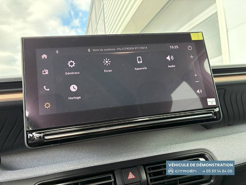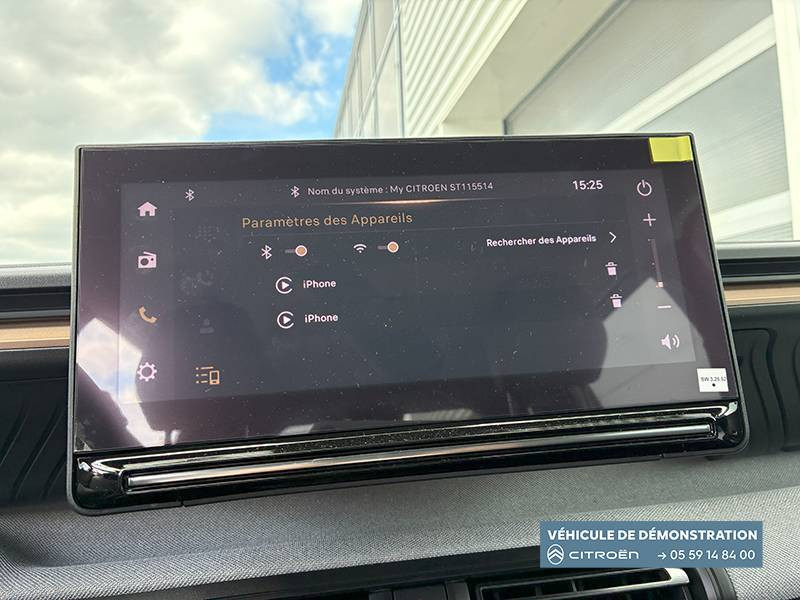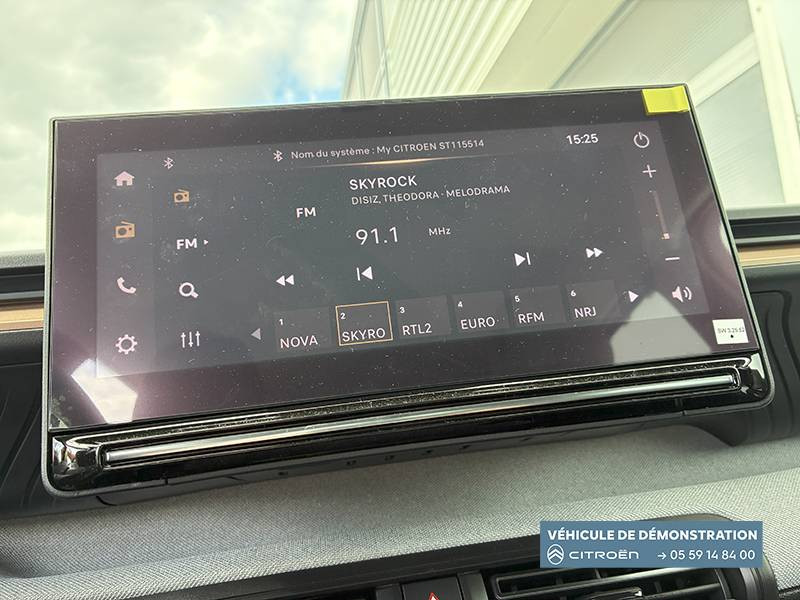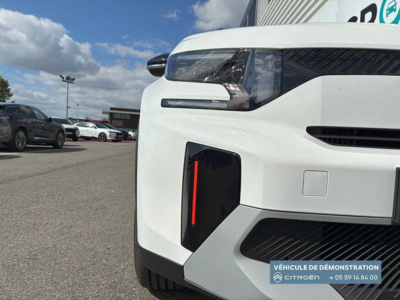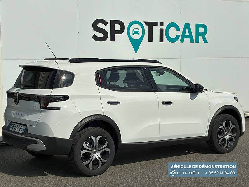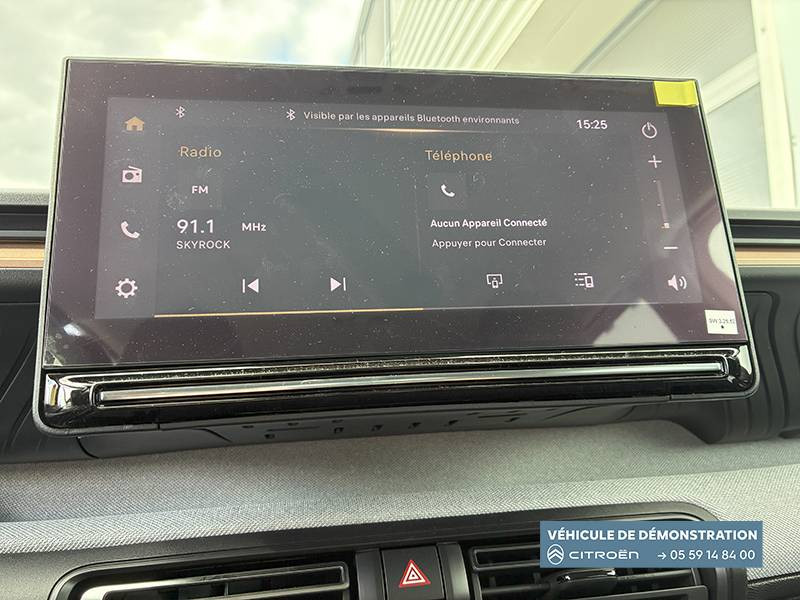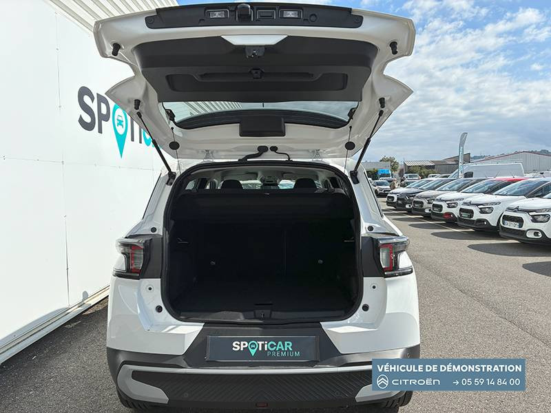 1 Prise USB type-C (charge rapide 3A) sur la console centrale / 1 Prise USB type-C (charge standard et data) sur la planche de bord / 2 Prises USB type-C (charge rapide 3A) en rang 2 / ABS, ESP, TCS / Aérateurs latéraux en noir brillant et 2 aérateurs en zone centrale sur planche de bord / AFU, REF / Anneau de remorquage AV et AR / Avertisseur sonore monoton / Banquette AR avec dossier fractionnable 2/3 et 1/3 / Barres de toit Noir Brillant / Boîte automatique 6 rapports / Boîtier télématique: Appel d'urgence et Citroën Assistance les services Connect ONE pendant une période de 10 ans / Citroën Head up Display (affichage tête haute) - LCD / Console centrale haute avec accoudoir et rangement fermé / Décors extérieurs Noir Brillant / Décors sur les panneaux de portes AV/AR et sur la planche de bord Bronze / Détection de sous-gonflage / Eclairage d'accompagnement et d'accueil / Eclairage d'ambiance monochromatique / Ecran central 10,25 " tactile: Apple CarPlay et Android Auto sans fil Système audio 6 HPs (DAB) / Elargisseurs d'ailes Noir Mat / Enjoliveurs 17" SYLVANITE (avec pneus classe A chainables) / Essuie-vitre AV automatique (capteur de pluie) / Frein de stationnement électrique / Garnissage Tissu Noir /Tissu Quadric Ambiance Urban Bronze avec Sièges Advanced Comfort / Lève-vitres AR électriques (descente séquentielle) / Lève-vitres AV électriques (descente séquentielle) / Ordinateur de bord multifonctions avec indicateur de température exterieure / Pack Safety - Active Safety Brake (Freinage automatique d'urgence) - Alerte active de Franchissement Involontaire de Ligne - Alerte Attention Conducteur - Reconnaissance des panneaux de signalisation - Régulateur-limiteur de vitesse / Plafonnier AV à LED avec lecteurs de cartes / Plancher de coffre escamotable / Poches aumônières au dos des sièges AV / Poignées de maintien au rang 2 / Poignées de portes extérieures Noir Brillant / Prise 12 V à l'AR de console centrale / Sabots AV et AR / Suspension Citroën Advanced Comfort / Témoin de non-bouclage des ceintures de sécurité conducteur et passagers / Volant Gainé avec décor chrome / Volet d'occultation du miroir de courtoise conducteur et passager