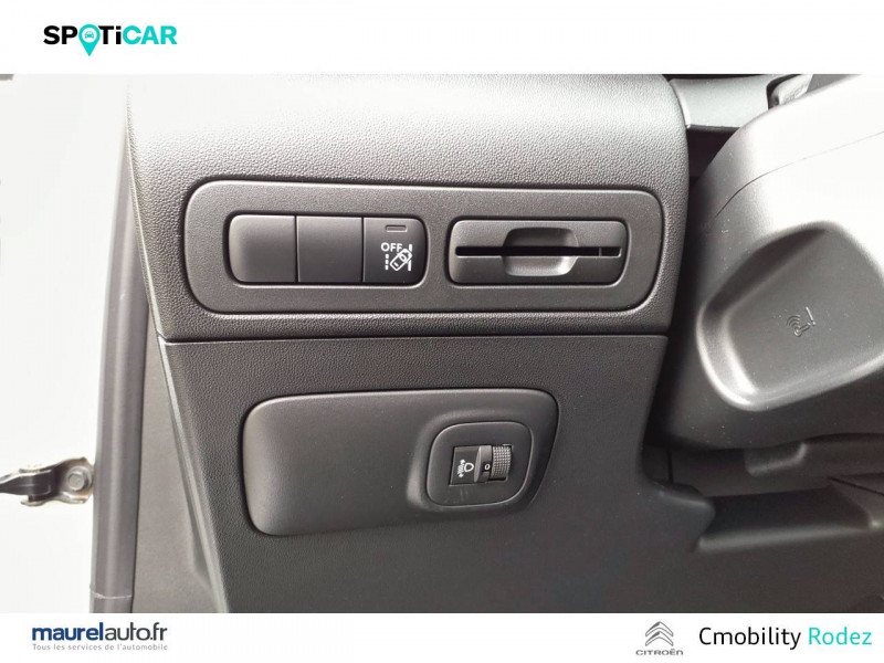 ABS avec REF, AFU et ESP / Accès et démarrage mains libres / Accoudoir central réglable sur siège conducteur / Active Safety Brake / Alerte Risque Collision / Barres de toit Noir Brillant / Citroën Connect Box avec Pack SOS et assistance inclus / Citroën Connect Nav sur tablette tactile 9'': comprend le système de navigation TomTom, la reconnaissance vocale et durant 3 ans les services Connect Nav (inclut les services « Zones de danger », « Info Trafic », « Stations-service », « Parkings », « Météo » et « Recherche locale »). / Décors extérieurs Noir Brillant / Détection de sous-gonflage / Elargisseurs d'ailes et bas de caisse Noir Mat / Enjoliveurs de projecteurs Noir Brillant / Frein à main avec insert chrome / Garnissage tissu effet cuir Mistral Black/Tissu Brasilia Graphite Chiné- Ambiance Metropolitan Graphite + sièges Advanced Comfort / Jantes alliage 17" ORIGAMI Diamantées / Kit de dépannage provisoire de pneumatiques / Mirror Screen / Mise en tablette du siège passager AV / Pack Auto / Pack City Camera Plus / Pack Color Shiny Black / Pack Safety - Active Safety Brake - Alerte active de Franchissement Involontaire de Ligne - Alerte Attention Conducteur - Alerte Risque Collision - Coffee Break Alert - Reconnaissance des panneaux de vitesse et recommandation - Régulateur-limiteur de vitesse - Témoin de non-bouclage des ceintures de sécurité conducteur et passagers / Plancher de coffre escamotable / Poignées de portes extérieures couleur caisse / Prise 12 V à l'AR de console centrale / Prise 12 V en AV de console centrale / Projecteurs antibrouillard LED avec éclairage statique d'intersection / Rehausse de siège conducteur / Rétroviseur intérieur électrochrome / Sabots de protection AV et AR Gris Anthra / Système audio numérique (DAB) MP3 6 HP / Toit Noir Perla Nera / Vitres et lunette AR surteintées - Freeglass