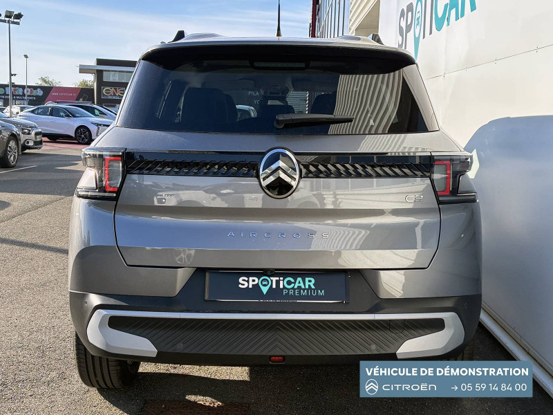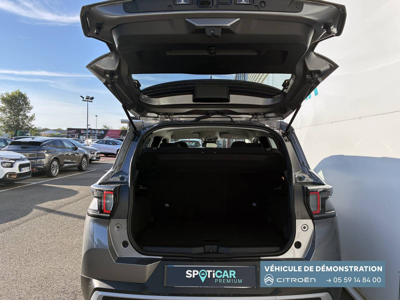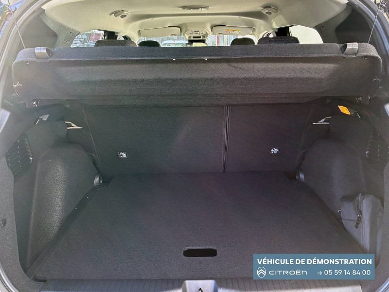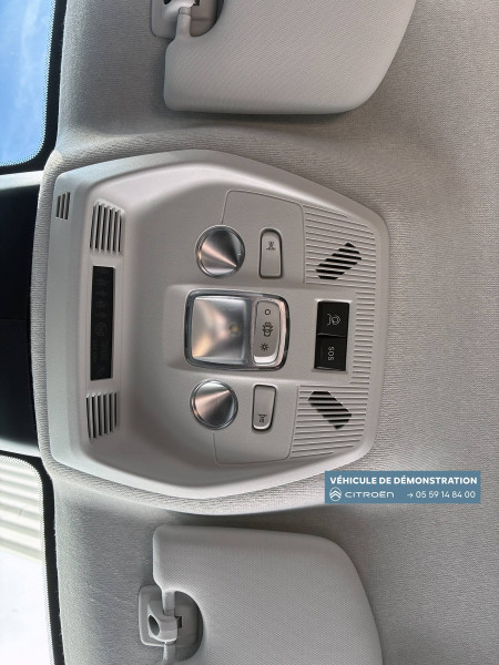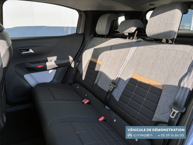 1 Prise USB type-C (charge rapide 3A) sur la console centrale / 1 Prise USB type-C (charge standard et data) sur la planche de bord / 2 Prises USB type-C (charge rapide 3A) en rang 2 / ABS, ESP / Aérateurs latéraux en noir brillant et 2 aérateurs en zone centrale sur planche de bord / AFU, REF / Anneau de remorquage AV et AR / Avertisseur sonore monoton / Banquette AR avec dossier fractionnable 2/3 et 1/3 / Barres de toit Noir Brillant / Boîte automatique 6 rapports / Boîtier télématique: Appel d'urgence et Citroën Assistance les services Connect ONE pendant une période de 10 ans / Citroën Head up Display (affichage tête haute) - LCD / Commutation automatique des feux de route / Console centrale haute avec accoudoir et rangement fermé / Décors extérieurs Noir Brillant / Décors sur les panneaux de portes AV/AR et sur la planche de bord Bronze / Détection de sous-gonflage / Eclairage d'accompagnement et d'accueil / Eclairage d'ambiance monochromatique / Ecran central 10,25 " tactile: Apple CarPlay et Android Auto sans fil Système audio 6 HPs (DAB) / Elargisseurs d'ailes Noir Mat / Enjoliveurs 17" SYLVANITE (avec pneus classe A chainables) / Essuie-vitre AV automatique (capteur de pluie) / Frein de stationnement électrique / Garnissage Tissu Noir /Tissu Quadric Ambiance Urban Bronze avec Sièges Advanced Comfort / Lève-vitres AR électriques (descente séquentielle) / Lève-vitres AV électriques (descente séquentielle) / Ordinateur de bord multifonctions avec indicateur de température exterieure / Pack Safety - Active Safety Brake (Freinage automatique d'urgence) - Alerte active de Franchissement Involontaire de Ligne - Alerte Attention Conducteur - Reconnaissance des panneaux de signalisation - Régulateur-limiteur de vitesse / Plafonnier AV à LED avec lecteurs de cartes / Plancher de coffre escamotable / Poches aumônières au dos des sièges AV / Poignées de maintien au rang 2 / Poignées de portes extérieures Noir Brillant / Prise 12 V à l'AR de console centrale / Sabots AV et AR / Suspension Citroën Advanced Comfort / Témoin de non-bouclage des ceintures de sécurité conducteur et passagers / Volant Gainé avec décor chrome / Volet d'occultation du miroir de courtoise conducteur et passager