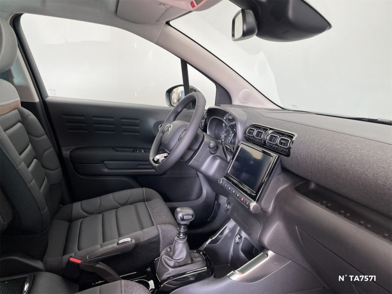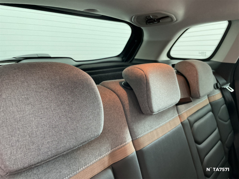 Avertisseur sonore monoton / Banquette AR avec dossier fractionnable 2/3 et 1/3 / Boîtier télématique: Appel d'urgence et Citroën Assistance les services Connect ONE pendant une période de 10 ans / Citroën Head up Display (affichage tête haute couleur) / Coques de rétroviseurs extérieurs Noir Mat / Décors extérieurs grainés / Eclairage d'accompagnement et d'accueil / Elargisseurs d'ailes Noir Mat / Enjoliveurs 16" Titanite / Equipements de sécurité ABS, AFU, ESP, REF, Aide au démarrage en pente, 6 Airbags (frontaux, latéraux AV et rideaux), Détection de sous-gonflage, Direction assistée, Kit de dépannage provisoire de pneumatiques, Témoin de non-bouclage des ceintures de sécurité conducteur et passagers et compris rang 3 pour l'option 7 places / Frein à main avec insert chrome / Garnissage Tissu Noir /Tissu Quadric Ambiance Urban Bronze / Lève-vitres AV électriques (descente séquentielle) / Pack Safety - Active Safety Brake (Freinage automatique d'urgence) - Alerte active de Franchissement Involontaire de Ligne - Alerte Attention Conducteur - Reconnaissance des panneaux de signalisation - Régulateur-limiteur de vitesse / Poche aumônière au dos des sièges AV / Poches aumônières au dos des sièges AV / Poignées de portes extérieures Noir Brillant / Prise 12 V verticale sur la console / Station d'accueil Smartphone Radio via smartphone (avec application My Citroën Play), 2 HP en rang 1, Commande de la radio sur le volant, Reconnaisance vocale via smartphone / Suspension Citroën Advanced Comfort / 1 prise USB -C sur la planche de bord (charge rapide 3A)