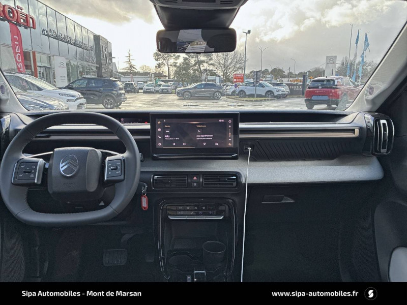 1 Prise USB type-C (charge rapide 3A) sur la console centrale / 1 Prise USB type-C (charge standard et data) sur la planche de bord / 2 Prises USB type-C (charge rapide 3A) en rang 2 / ABS, ESP / Aérateurs latéraux en noir brillant et 2 aérateurs en zone centrale sur planche de bord / AFU, REF / Avertisseur sonore monoton / Banquette AR avec dossier fractionnable 2/3 et 1/3 / Barres de toit Noir Brillant / Boîte automatique 6 rapports / Boîtier télématique: Appel d'urgence et Citroën Assistance les services Connect ONE pendant une période de 10 ans / Citroën Head up Display (affichage tête haute couleur) - TFT / Commutation automatique des feux de route / Console centrale haute avec accoudoir et rangement fermé / Décors extérieurs Noir Brillant / Décors sur les panneaux de portes AV/AR et sur la planche de bord Bronze / Détection de sous-gonflage / Eclairage d'accompagnement et d'accueil / Eclairage d'ambiance monochromatique / Ecran central 10,25 " tactile: Apple CarPlay et Android Auto sans fil Système audio 6 HPs (DAB) / Elargisseurs d'ailes Noir Mat / Enjoliveurs 17" SYLVANITE (avec pneus classe A chainables) / Essuie-vitre AV automatique (capteur de pluie) / Frein de stationnement électrique / Garnissage Tissu Noir /Tissu Quadric Ambiance Urban Bronze avec Sièges Advanced Comfort / Lève-vitres AR électriques (descente séquentielle) / Lève-vitres AV électriques (descente séquentielle) / Ordinateur de bord multifonctions avec indicateur de température exterieure / Pack Safety - Active Safety Brake (Freinage automatique d'urgence) - Alerte active de Franchissement Involontaire de Ligne - Alerte Attention Conducteur - Reconnaissance des panneaux de vitesse - Régulateur-limiteur de vitesse / Plafonnier AV à LED avec lecteurs de cartes / Plancher de coffre escamotable / Poches aumônières au dos des sièges AV / Poignées de maintien au rang 2 / Poignées de portes extérieures Noir Brillant / Prise 12 V à l'AR de console centrale / Sabots AV et AR / Suspension Citroën Advanced Comfort / TCS (Contrôle de la traction) / Témoin de non-bouclage des ceintures de sécurité conducteur et passagers / Volant Gainé avec décor chrome / Volet d'occultation du miroir de courtoise conducteur et passager