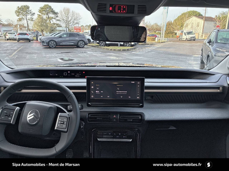 1 Prise USB type-C (charge standard et data) sur la planche de bord / 2 Prises USB type-C (charge rapide 3A) en rang 2 / ABS, ESP / Aérateurs latéraux en noir brillant et 2 aérateurs en zone centrale sur planche de bord / AFU, REF / Anneau de remorquage AV et AR / Avertisseur sonore monoton / Banquette AR avec dossier fractionnable 2/3 et 1/3 / Barres de toit Noir Brillant / Boîte manuelle 6 rapports / Boîtier télématique: Appel d'urgence et Citroën Assistance les services Connect ONE pendant une période de 10 ans / Citroën Head up Display (affichage tête haute) - LCD / Commutation automatique des feux de route / Décors extérieurs Noir Brillant / Décors sur les panneaux de portes AV/AR et sur la planche de bord Bronze / Détection de sous-gonflage / Eclairage d'accompagnement et d'accueil / Eclairage d'ambiance monochromatique / Ecran central 10,25 " tactile: Apple CarPlay et Android Auto sans fil Système audio 6 HPs (DAB) / Elargisseurs d'ailes Noir Mat / Enjoliveurs 17" SYLVANITE (avec pneus classe A chainables) / Essuie-vitre AV automatique (capteur de pluie) / Frein à main avec insert chrome / Garnissage Tissu Noir /Tissu Quadric Ambiance Urban Bronze avec Sièges Advanced Comfort / Lève-vitres AR électriques (descente séquentielle) / Lève-vitres AV électriques (descente séquentielle) / Ordinateur de bord multifonctions avec indicateur de température exterieure / Pack Safety - Active Safety Brake (Freinage automatique d'urgence) - Alerte active de Franchissement Involontaire de Ligne - Alerte Attention Conducteur - Reconnaissance des panneaux de signalisation - Régulateur-limiteur de vitesse / Plafonnier AV à LED avec lecteurs de cartes / Plancher de coffre escamotable / Poches aumônières au dos des sièges AV / Poignées de maintien au rang 2 / Poignées de portes extérieures Noir Brillant / Prise 12 V verticale sur la console / Sabots AV et AR / Suspension Citroën Advanced Comfort / Témoin de non-bouclage des ceintures de sécurité conducteur et passagers / Volant Gainé avec décor chrome / Volet d'occultation du miroir de courtoise conducteur et passager