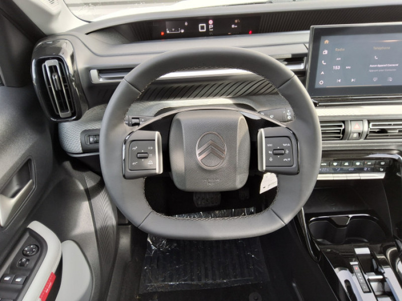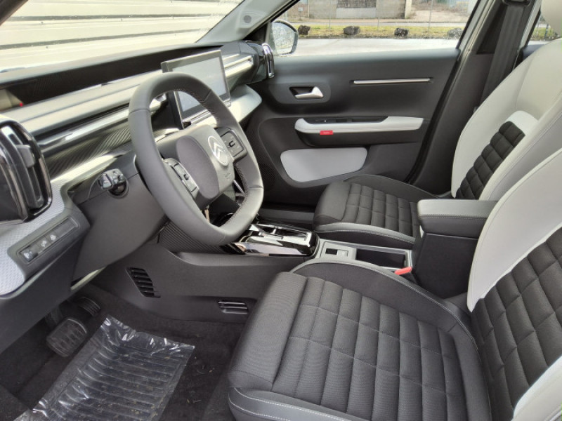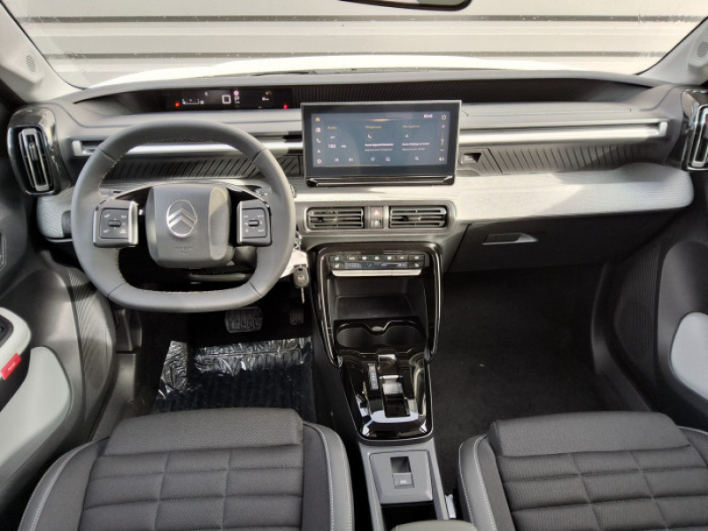 1 Prise USB type-C (charge rapide 3A) sur la console centrale / 1 Prise USB type-C (charge standard et data) sur la planche de bord / 2 Prises USB type-C (charge rapide 3A) en rang 2 / ABS, ESP / AFU, REF / Avertisseur sonore monoton / Banquette AR avec dossier fractionnable 2/3 et 1/3 / Barres de toit Noir Brillant / Boite automatique 6 rapports / Boitier telematique: Appel d'urgence et Citroen Assistance / Centre de roue noir avec logo / Citroen Head up Display (affichage tete haute couleur) - TFT / Console centrale haute avec accoudoir et rangement ferme / Decors exterieurs Noir Brillant / Detection de sous-gonflage / Eclairage d'accompagnement et d'accueil / Eclairage d'ambiance monochromatique / Ecran central 10,25 " tactile: Apple CarPlay et Android Auto sans fil / Elargisseurs d'ailes Noir Mat / Essuie-vitre AV automatique (capteur de pluie) / Frein de stationnement electrique / Garnissage Maille Hello Noire /Toile enduite Gris clair / Jantes alliage 17" ARAGONITE Diamantees / Kit de depannage provisoire de pneumatiques / Leve-vitres AR electriques (descente sequentielle) / Leve-vitres AV electriques (descente sequentielle) / Navigation 3D sur ecran central 10,25" tactile / Pack Safety / Plafonnier a LED / Plancher de coffre escamotable / Poignees de maintien au rang 2 / Poignees de portes exterieures Noir Brillant / Prise 12 V a l'AR de console centrale / Recharge sans fil pour smartphone (puissance 15W) / Retroviseur interieur electrochrome / Sabots AV et AR / Sieges Advanced Comfort / Station d'accueil Smartphone / Suspension Citroen Advanced Comfort / Temoin de non-bouclage des ceintures de securite conducteur et passagers / Volant Gaine avec decor chrome