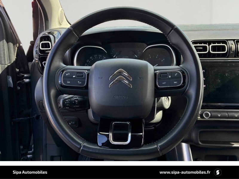 ABS avec REF, AFU et ESP / Active Safety Brake / Alerte risque collision / Barres de toit Noir Brillant / Citroën Connect Box avec Pack SOS et assistance inclus: bouquet de services comprenant les appels d'urgence et d'assistance localisés. / Citroën Connect Nav sur tablette tactile 9'': comprend le système de navigation TomTom, la reconnaissance vocale et durant 3 ans les services Connect Nav (inclut les services « Zones de danger », « Info Trafic », « Stations-service », « Parkings », « Météo » et « Recherche locale »). / Coques de rétroviseurs extérieurs Noir Onyx Brillant / Décors extérieurs Noir Brillant / Détection de sous-gonflage / Elargisseurs d'ailes et bas de caisse Noir Mat / Enjoliveurs de projecteurs Noir Brillant / Frein à main avec insert chrome / Jantes alliage 16" X CROSS Diamantées / Kit de dépannage provisoire de pneumatiques / Mirror Screen / Pack Auto / Pack Color Shiny Black / Pack Safety - Active Safety Brake - Alerte active de Franchissement Involontaire de Ligne - Alerte Attention Conducteur - Alerte Risque Collision - Coffee Break Alert - Reconnaissance des panneaux de vitesse et recommandation - Régulateur-limiteur de vitesse - Témoin de non-bouclage des ceintures de sécurité conducteur et passagers / Plancher de coffre escamotable / Poignées de portes extérieures couleur caisse / Prise 12V en arrière de console centrale / Projecteurs antibrouillard LED avec éclairage statique d'intersection / Rehausse de siège conducteur / Sabots de protection AV et AR Gris Anthra / Système audio numérique (DAB) MP3 6 HP / Tissu Mica Grey / Vitres et lunette AR surteintées - Chrome in glass
