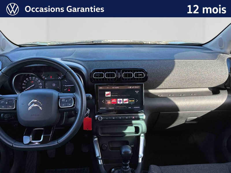 ABS avec REF, AFU et ESP / Barres de toit Noir Brillant / Citroën Connect Nav sur tablette tactile 9'': comprend le système de navigation TomTom, la reconnaissance vocale et durant 3 ans les services Connect Nav (inclut les services « Zones de danger », « Info Trafic », « Stations-service », « Parkings », « Météo » et « Recherche locale »). / Décors extérieurs Noir Brillant / Détection de sous-gonflage / Elargisseurs d'ailes et bas de caisse Noir Mat / Enjoliveurs de projecteurs Noir Brillant / Frein à main avec insert chrome / Jantes alliage 16" X CROSS Diamantées / Kit de dépannage provisoire de pneumatiques / Mirror Screen / Pack Auto / Pack Color Shiny Black / Pack Safety - Active Safety Brake - Alerte active de Franchissement Involontaire de Ligne - Alerte Attention Conducteur - Alerte Risque Collision - Coffee Break Alert - Reconnaissance des panneaux de vitesse et recommandation - Régulateur-limiteur de vitesse - Témoin de non-bouclage des ceintures de sécurité conducteur et passagers / Plancher de coffre escamotable / Poignées de portes extérieures couleur caisse / Prise 12 V à l'AR de console centrale / Prise 12 V en AV de console centrale / Projecteurs antibrouillard LED avec éclairage statique d'intersection / Rehausse de siège conducteur / Sabots de protection AV et AR Gris Anthra / Système audio numérique (DAB) MP3 6 HP / Tissu Mica Grey / Vitres et lunette AR surteintées - Chrome in glass
