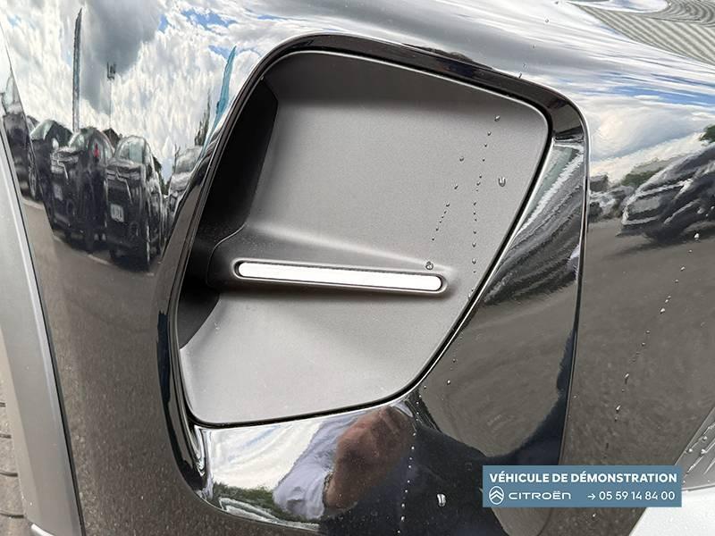1 prise USB -C sur la planche de bord (charge rapide 3A) / 2 Prises USB type-C (charge rapide 3A) en rang 2 / ABS, ESP, TCS / Ambiance Metropolitan Grey avec Sièges Advanced Comfort / Barres de toit Noir Brillant / Boîte automatique 6 rapports / Boîtier télématique: Appel d'urgence et Citroën Assistance les services Connect ONE pendant une période de 10 ans / Citroën Head up Display (affichage tête haute) - TFT / Décors extérieurs Noir Brillant / Détection de sous-gonflage / Ecran central 10,25 " tactile: Apple CarPlay et Android Auto sans fil Système audio 6 HPs (DAB) / Elargisseurs d'ailes Noir Mat / Essuie-vitre AV automatique (capteur de pluie) / Garnissage Tissu Noir / Tissu City / Toile enduite Claire avec Sièges Advanced Comfort. Avec les décors sur les panneaux de portes AV/AR et sur la planche de bord Gris Sidérite, les lève-vitres AR électriques (descente séquentielle), le siège conducteur réglable en hauteur, les appui-têtes AV réglables en hauteur, les accoudoirs de porte AV et AR recouverts de textile moussé avec étiquettes «Happy Tags» (messages positifs), et des poches aumônières au dos des sièges AV / Jantes alliage 17" Atacamite diamantées / Lève-vitres AR électriques (descente séquentielle) / Lève-vitres AV électriques (descente séquentielle) / Navigation 3D sur écran central 10,25" tactile / Pack Safety - Active Safety Brake (Freinage automatique d'urgence) - Alerte active de Franchissement Involontaire de Ligne - Alerte Attention Conducteur - Reconnaissance des panneaux de signalisation - Régulateur-limiteur de vitesse / Poignées de portes extérieures Noir Brillant / Recharge sans fil pour smartphone / Rétroviseur intérieur électrochrome / Sabots de protection AV et AR / Station d'accueil Smartphone Radio via smartphone (avec application My Citroën Play), 2 HP en rang 1, Commande de la radio sur le volant / Suspension Citroën Advanced Comfort / Témoin de non-bouclage des ceintures de sécurité conducteur et passagers