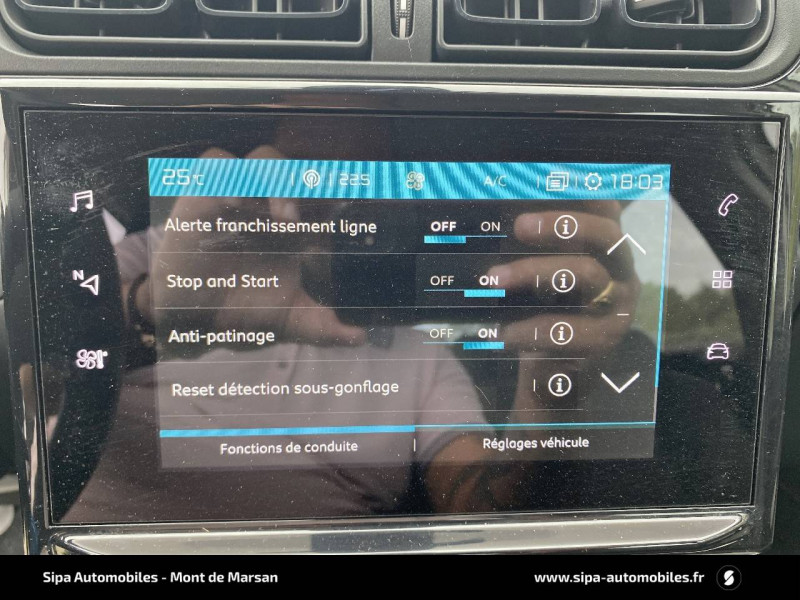 ABS, AFU, ASR et ESP (ESC amélioré avec assistance en cas de vent latéral, contrôle de stabilité de la remorque, et freinage après collision) / Airbump Black avec gélule Blanc Banquise / Bandeau de planche de bord Noir Brillant / Détection de sous-gonflage / Elargisseurs d'aile et bas de caisse Noir Mat / Enjoliveurs 3D 16'' STEEL & DESIGN / Garnissage tissu Mica Grey / Kit de dépannage provisoire de pneumatiques / MyCitroën Drive Mirror Screen compatible avec Android Auto et Apple CarPlay, Navigation sur tablette tactile 7": comprend le système de navigation TomTom, la reconnaissance vocale et durant 3 ans les services MyCitroën Drive (inclut les services « Zones de danger », « Info Trafic », « Stations-service », « Parkings », « Météo » et « Recherche locale ») Système audio numérique MP3 6 HP (DAB) / Pack Color Noir / Pack Safety - Alerte active de Franchissement Involontaire de Ligne - Alerte Attention Conducteur - Alerte Risque Collision - Coffee Break Alert - Reconnaissance des panneaux de vitesse et recommandation - Régulateur-limiteur de vitesse - Témoin de non-bouclage des ceintures de sécurité conducteur et passagers / Poignées de portes extérieures couleur caisse / Tablette AR cache-bagages / Toit Monoton