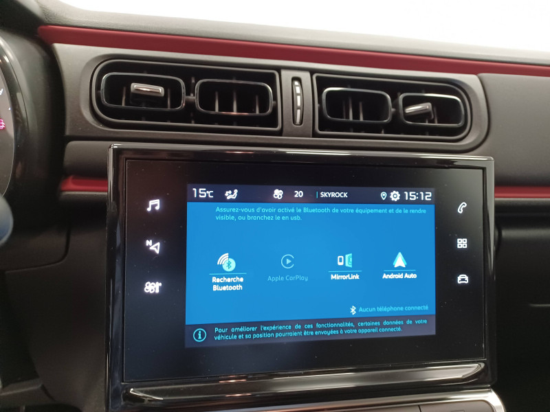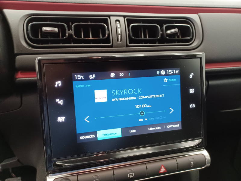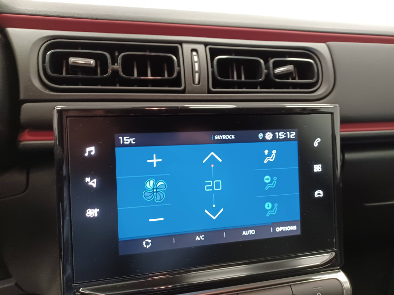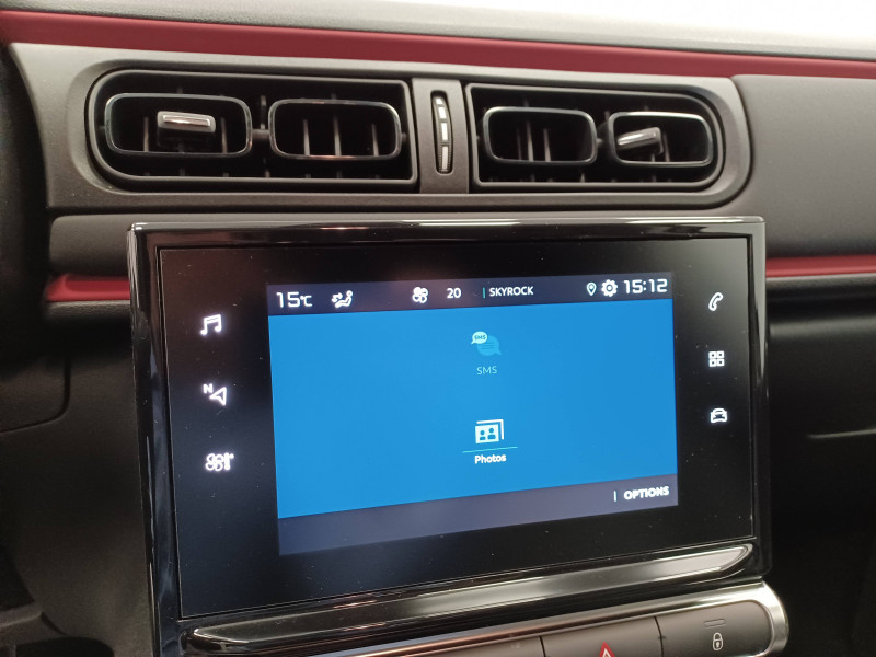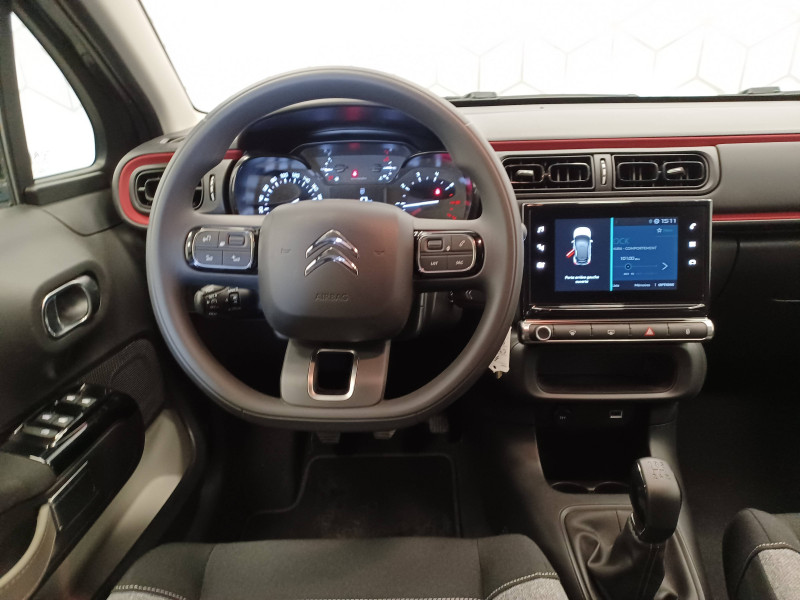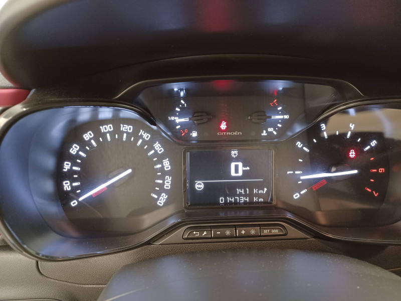 ABS + REF + AFU / Ambiance intérieure C-Series / Citroën Connect Radio sur tablette tactile 7'' / Clignotants impulsionnels / Climatisation automatique avec fonction filtrage de l'air / Coques de rétroviseurs Noir Perla Nera / Décors extérieurs Noir mat / Détection de sous-gonflage / Elargisseurs d'ailes et bas de caisse / Feux AR à effet 3D / Garnissage Tissu Curitiba Gris avec la bande en haut du dossier en Tissu Triton Rouge / Jantes alliage 16" MATRIX diamantées / Kit de dépannage provisoire de pneumatiques / Mirror Screen / Pack Color Anodised Deep Red / Pack Safety - Active Safety Brake (Freinage automatique d'urgence) - Alerte active de Franchissement Involontaire de Ligne - Alerte Attention Conducteur - Reconnaissance des panneaux de signalisation - Régulateur-limiteur de vitesse / Pack Visibilité / Pare-soleil avec miroir occultable côtés conducteur et passager / Pavillon couleur caisse / Personnalisation extérieure C-Series: badges C-Series sur les portes AV, décor central de toit spécifique, Pack Color Anodised Deep Red et les adhésifs de custode spécifiques / Plafonnier AV simple / Poignées de portes extérieures couleur caisse / Sécurité enfants mécanique / Système audio numérique (DAB) MP3 6 HP / Volant moussé