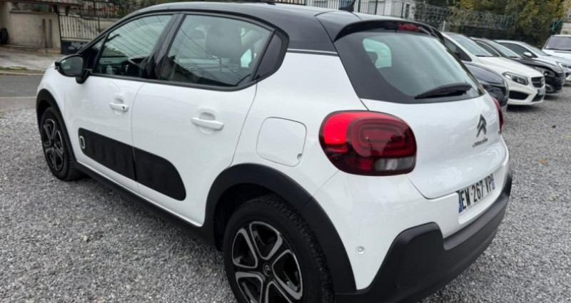 Citroën C3 BUSINESS PureTech 110 S&S EAT6 Shine - 1 ERE MAIN citadine, blanc, 6 cv, 5 portes, couleur intérieure : noir, première mise en circulation le 23/04/2018, première main, garantie 6 mois. Prix TTC : 8 990,00 € Prix HT : 7 492,00 € La TVA est récupérable sur ce véhicule. 5 places OPTIONS ET ÉQUIPEMENTS : Audio - Télécommunications : - - Apple Car Play / Android Auto - - bluetooth - Mirror Screen - Bluetooth - GPS - Prise audio usb Conduite : - - régulateur de vitesse - Boite automatique - limiteur de vitesse - pack visibilite - régulateur de vitesse Extérieur : - Caméra de Recul - Enjoliveurs 3D 16 - Feux diurnes a LED - Poignees de portes exterieures couleur caisse - Retroviseurs electriques et degivrants - Aide au stationnement AR - caméra de recul - rétroviseurs dégivrants - rétroviseurs rabattables - rétroviseurs électriques Intérieur : - - 4 Vitres éléctriques - - Commandes au volant - Banquette AR fractionnable 2/3 - 1/3 - Pommeau de levier de vitesse en Cuir - Pommeau de levier de vitesse en croute de cuir - Volant croute de cuir - Volant mousse reglable en hauteur et en profondeur - climatisation : automatique - direction assistée - fermeture centralisée - ordinateur de bord - siège conducteur réglable en hauteur - vitres électriques Pack : - Airbump Black - Bandeau de planche de bord Noir Brillant - Coques de retroviseurs exterieurs Noir Brillant - Decors exterieurs Noir Brillant - Elargisseurs d'aile et bas de caisse Noir Mat - Pack Safety - Rehausse de siege conducteur - Retroviseurs exterieurs electriques et degivrants - Toit Noir Onyx - intérieur : tissu Sellerie : - Garnissage Tissu Mica Grey Sécurité : - - feux automatique - Roue de secours type galette - Temoin de non-bouclage des ceintures de securite conducteur et passagers - ABS - Aide au demarrage en pente - ESP - aide au freinage d'urgence - airbags frontaux - contrôle pression des pneus - phares antibrouillard - roue de secours Autres équipements et informations : - - detecteur franchiseur de ligne - CITROEN Connect Nav sur tablette tactile 7 + CITROEN Connect Box avec pack SOS - CITROEN Connect Radio sur tablette tactile 7'' - Classe Crit'air : 1 - MP3 - Puissance kilowatt : 81 kw - USB - consommation extra urbaine : 4,20 litres - consommation mixte : 4,90 litres - consommation urbaine : 6,10 litres - dimension des jantes : 16 pouces - feux de circulation diurne - puissance réelle : 110 ch - émission CO2 : 110 g/km Référence annonce : fj0n3xwz