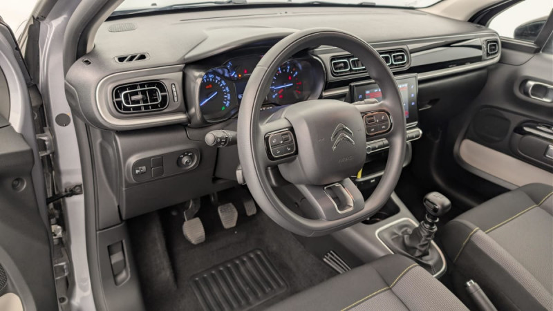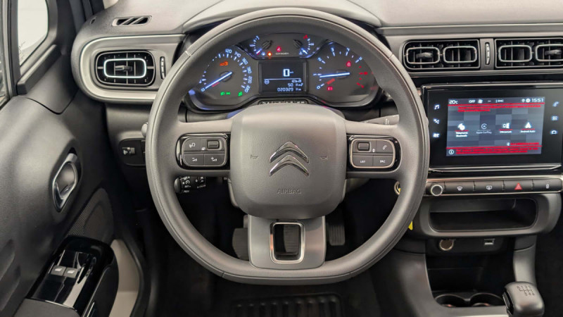 Détection de sous-gonflage / Pack Visibilité : Allumage automatique des feux de croisement Essuie-vitre AV automatique (capteur de pluie) Eclairage d'accueil et d'accompagnement / Lève-vitres AV séquentiels / Pack Safety : Alerte de Franchissement Involontaire de ligne (AFIL) Coffee Break Alert Reconnaissance des panneaux de vitesse Témoin de non-bouclage des ceintures de sécurité conducteur et passagers / Pack Color Noir : Décors d?Airbump et de projecteurs antibrouillard colorés Airbump Black avec gélule Blanc Banquise / MyCitroën Play Mirror Screen, Système audio numérique MP3 6 HP (DAB), Tablette tactile 7'' / Jantes alliage 16" MATRIX Diamantées / Garnissage tissu Mica Grey / ABS avec REF, AFU et ESP / / Véhicules équivalents: 208, Clio, yaris