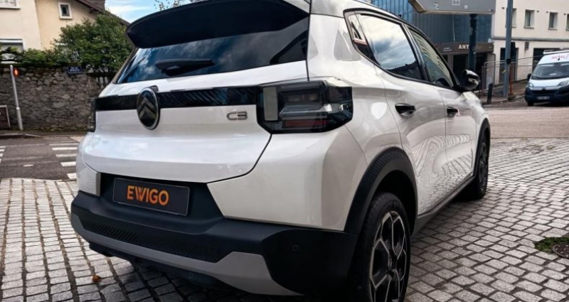 Citroën C3 GENERATION-IV 1.2 PURETECH 100 MAX berline, blanc, 5 cv, 5 portes, première mise en circulation le 31/10/2024, garantie 11 mois. - NOS SERVICES ET PRESTATIONS COMPLÉMENTAIRES - - Visite virtuelle : avant de vous déplacer, visualisez votre futur véhicule sous toutes ses coutures . Contactez-nous pour en voir plus ! - Extension de garantie jusqu'à 60 mois. - Solutions de Financement de 12 à 84 mois. - Livraison dans toute la France métropolitaine (sur devis). - Reprise possible de votre ancien véhicule. - Les informations délivrées par cette annonce sont non contractuelles et données à titre indicatif. Packs disponibles (véhicules éligibles au Label) - Pack Clés en Main - 691 € TTC(¹)(²) Démarches (hors carte grise) | 1/4 de carburant | Nettoyage First | Garantie 6 mois | Label inclus? - Pack Sérénité - 891 € TTC(¹)(²) Démarches (hors carte grise) | 1/2 de carburant | Nettoyage Confort | Garantie 12 mois | Label inclus? - Pack Prestige - 1.091 € TTC(¹)(²) Démarches (hors carte grise) | Plein complet | Nettoyage Prestige | Garantie 12 mois | Label inclus? + Surprise du chef - (¹) Les véhicules non éligibles au Label bénéficient de tarifs préférentiels. Veuillez contacter votre conseiller pour obtenir les conditions tarifaires applicables. (²) Tarif pour les véhicules deux roues motrices dont la valeur de vente est inférieure à 60 000 € TTC. - - Véhicule visible uniquement sur rendez-vous. - Nous sommes ouverts du lundi au samedi de 9h00 à 12h00 de 14h00 à 18h00. - [Coordonnées masquées] - [Coordonnées masquées] 5 places OPTIONS ET ÉQUIPEMENTS : Audio - Télécommunications : - Android auto sans fil - Apple CARPLAY sans fil - Info trafic - Radio - Reconnaissance vocale - Système d'avertissement de distance - Bluetooth - GPS - Prise audio usb - commandes vocales - radio numérique - système de navigation Conduite : - Boîte de vitesse manuelle - Détecteur de pluie - Essuies glaces automatiques - Indicateur de limitation de vitesse - Line assist - Stop & Start - allumage automatique des feux - détecteur de pluie - limiteur de vitesse Extérieur : - Capteurs d'aide au stationnement arrière - Phares AV de jour à LED - Phares Full LED - Rétroviseurs latéraux électriques - Phares AR à led - barres de toit - camera 360 - jantes : aluminium - jantes alliage - phares à LED - rétroviseurs rabattables - rétroviseurs électriques - système d'aide au stationnement Intérieur : - Miroir de courtoisie passager éclairé - Volant alu/cuir - Porte gobelet avant - banquette 1/3 - 2/3 - climatisation : automatique - direction assistée - fermeture centralisée - non fumeur - ordinateur de bord - rétroviseur interieur electrochrome - verrouillage à distance - vitres surteintées - vitres électriques - volant réglable hauteur - volant réglable profondeur Pack : - Intérieur tissu - Pneus été - Sièges arrières 1/3 - 2/3 - Cockpit numérique - GPS couleur - anti démarrage - détecteur de lumière - nombre de rapports : 6 vitesses - volant multifonctions - volant réglable - Écran multifonction Sécurité : - Airbags - Antibrouillards avant - Détection somnolence - Lecture des panneaux - Système de lecture des panneaux - ABS - Aide au demarrage en pente - ESP - airbag coté passager - airbags latéraux - anti-patinage - fixations ISOFIX - kit de dépannage pneumatique - phares antibrouillard - système d'appel d'urgence Autres équipements et informations : - Carnet d'entretien dématérialisé - Compatible E-10 - Double des clés - Détection des piétons - Line assist avec correction de trajectoire - Phares AV de jour - Streaming audio intégré - Classe Crit'air : 1 - GPS tactile - Puissance kilowatt : 74 kw - USB - dimension des jantes : 17 pouces - puissance réelle : 100 ch - état : excellent Référence annonce : d152360