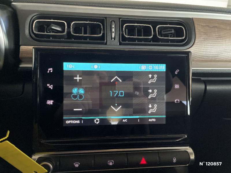 Kit de dépannage provisoire de pneumatiques / Pommeau de levier de vitesse en croûte de cuir / Levier de frein à main en croûte de cuir / ABS avec REF, AFU et ESP / Mirror Screen / Climatisation automatique avec fonction filtrage de l'air / Pare-soleil avec miroir occultable côtés conducteur et passager / Poignées de portes extérieures couleur caisse / Système audio numérique (DAB) MP3 6 HP / Coques de rétroviseurs couleur pavillon / Feux AR à effet 3D / Accoudoirs de panneaux de portes textile avec sangle / Bandeau de planche de bord aspect Bois / Pack Color Noir / Citroën Connect Nav sur tablette tactile 7'': comprend le système de navigation TomTom, la reconnaissance vocale et durant 3 ans les services Connect Nav (inclut les services ' Zones de danger », ' Info Trafic », ' Stations-service », ' Parkings », ' Météo » et ' Recherche locale ») / Allumage des feux de détresse en cas de forte décélération / Jantes alliage 17" VECTOR diamantées / Décors extérieurs Noir Brillant / Détection de sous-gonflage / Pack Visibilité / Lève-vitres AV séquentiels / Plafonnier AV à lampes avec lecteurs de cartes / Sécurité enfants mécanique / Clignotants impulsionnels / Volant en croûte de cuir / Accès et démarrage mains libres / Elargisseurs d'ailes et bas de caisse Noir Mat / MyCitroën Drive navigation sur tablette tactile 7'': comprend le système de navigation TomTom, la reconnaissance vocale et durant 3 ans les services MyCitroën Drive (inclut les services ' Zones de danger », ' Info Trafic », ' Stations-service », ' Parkings », ' Météo » et ' Recherche locale ») / Pack Safety / Pavillon bi-ton avec coques de rétroviseurs couleur pavillon et adhésifs de custodes avec motif / Airbump Black avec ponctuelle colorée / Airbump Black avec gélule Blanc Banquise / Accoudoir conducteur et le bandeau de planche de bord à l'aspect bois / Garnissage mixte Tissu Brumeo/Tissu effet cuir Isabella Ambiance Techwooda + Sièges Advanced Comfort / Rétroviseur intérieur électrochrome