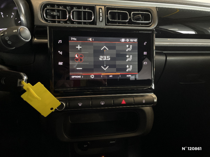 Kit de dépannage provisoire de pneumatiques / Pommeau de levier de vitesse en croûte de cuir / Mirror Screen / Climatisation automatique avec fonction filtrage de l'air / ABS avec REF, AFU et ESP / Poignées de portes extérieures couleur caisse / Pare-soleil avec miroir occultable côtés conducteur et passager / Système audio numérique (DAB) MP3 6 HP / Coques de rétroviseurs couleur pavillon / Feux AR à effet 3D / Accoudoirs de panneaux de portes textile avec sangle / Bandeau de planche de bord Noir Brillant avec cerclage Chrome Satin / Volant moussé / Enjoliveurs 3D 16" STEEL & DESIGN / Pack Color Noir / Citroën Connect Nav sur tablette tactile 7'': comprend le système de navigation TomTom, la reconnaissance vocale et durant 3 ans les services Connect Nav (inclut les services ' Zones de danger », ' Info Trafic », ' Stations-service », ' Parkings », ' Météo » et ' Recherche locale ») / Allumage des feux de détresse en cas de forte décélération / Décors extérieurs Noir mat / Détection de sous-gonflage / Lève-vitres AV séquentiels / Pack Visibilité / Plafonnier AV à lampes avec lecteurs de cartes / Sécurité enfants mécanique / Clignotants impulsionnels / Volant en croûte de cuir / Bandeau de planche de bord Noir Brillant / Elargisseurs d'ailes et bas de caisse Noir Mat / Tissu Mica Grey / Pavillon bi-ton avec coques de rétroviseurs couleur pavillon et adhésifs de custodes avec motif / MyCitroën Play Mirror Screen, Système audio numérique MP3 6 HP (DAB), Tablette tactile 7'' / Pack Safety / Airbump Black avec ponctuelle colorée / Airbump Black avec gélule Blanc Banquise