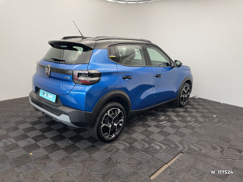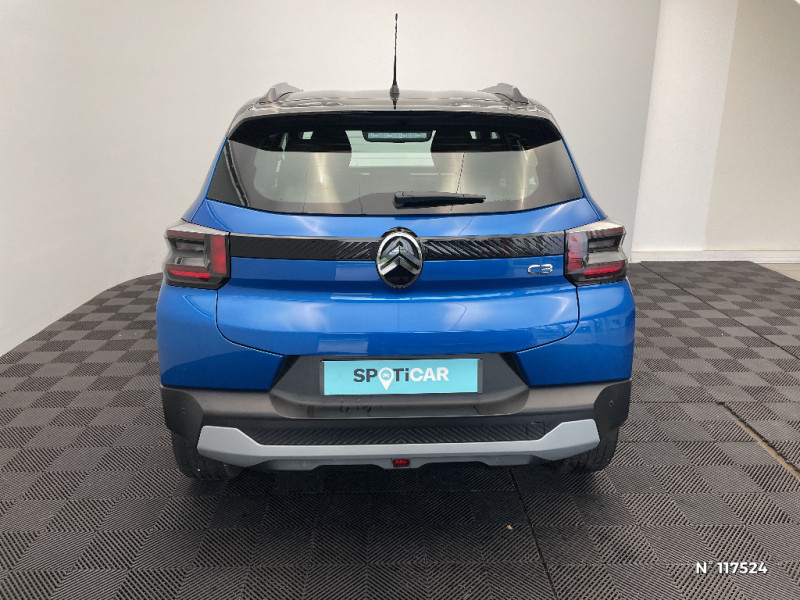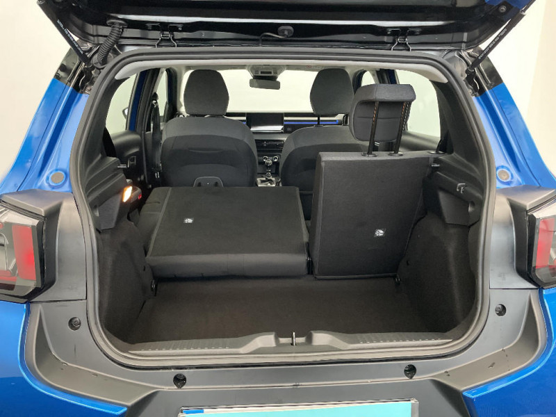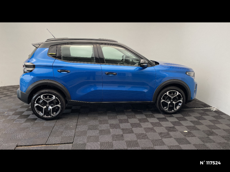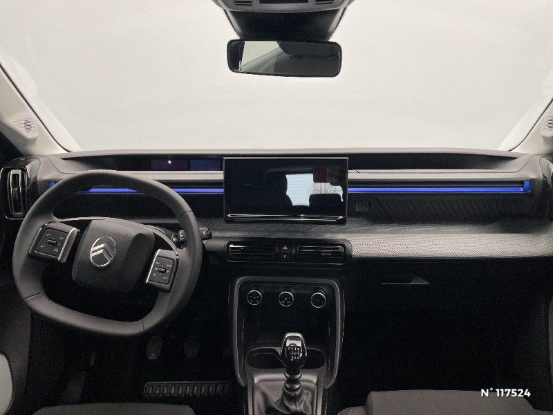Essuie-vitre AV automatique (capteur de pluie) / Toit Monoton / ABS, ESP, TCS / Poignées de portes extérieures Noir Brillant / Détection de sous-gonflage / 2 Prises USB type-C (charge rapide 3A) en rang 2 / Ecran central 10,25 " tactile: Apple CarPlay et Android Auto sans fil Système audio 6 HPs (DAB) / Boîte automatique 6 rapports / Boîte manuelle 6 rapports / Ambiance Urban Grey avec Sièges Advanced Comfort / Enjoliveurs 17" AZURITE / Boîtier télématique : Appel d'urgence et Citroën Assistance les services Connect ONE pendant une période de 10 ans / Garnissage Tissu Noir / Tissu Asphalt avec Sièges Advanced Comfort / AFU, REF / Clignotants impulsionnels / Sécurité enfants mécanique / Suspension Citroën Advanced Comfort / 1 prise USB -C sur la planche de bord (charge rapide 3A) / Lève-vitres AV électriques (descente séquentielle) / Station d'accueil Smartphone Radio via smartphone (avec application My Citroën Play), 2 HP en rang 1, Commande de la radio sur le volant / Ambiance Urban Grey - Accoudoirs de porte AV et AR recouverts de textile moussé avec étiquette "Happy Tags" (messages positifs), - Appui-têtes AV réglables en hauteur, - Décors sur les panneaux de porte AV Ultra Blue, - Décors sur la planche de bord Gris Ultra Blue, - Poches aumônières et poches supplémentaires pour smartphone au dos des sièges AV / Eclairage d'accueil et d'accompagnement / Témoin de non-bouclage des ceintures de sécurité conducteur et passagers / Pack Safety - Active Safety Brake (Freinage automatique d'urgence) - Alerte active de Franchissement Involontaire de Ligne - Alerte Attention Conducteur - Reconnaissance des panneaux de signalisation - Régulateur-limiteur de vitesse / Sabots de protection AV et AR / Citroën Head up Display (affichage tête haute) - TFT / ABS avec REF, AFU et ESP / Commutation automatique des feux de route / Système audio numérique MP3 6 HP (DAB) / Garnissage Tissu Noir / Tissu Asphalt avec Sièges Advanced Comfort. Comprend les décors sur les panneaux de portes AV/ AR et sur la planche de bord Ultra Blue, le siège conducteur réglable en hauteur, les appui-têtes AV réglables en hauteur, les accoudoirs de porte AV et AR recouverts de textile moussé avec étiquettes ' Happy Tags » (messages positifs), et des poches aumônières au dos des sièges AV / Elargisseurs d'ailes Noir Mat / Barres de toit Noir Brillant / Décors extérieurs Noir Brillant / Décors extérieurs Noir Brillant (enjoliveurs de montant central et custode) / Fixations ISOFIX sur les deux places latérales AR avec 3 points d'encrage / Allumage des feux de détresse en cas de forte décélération / Témoin et alerte de non-bouclage des ceintures AV et de débouclage AV et AR / Lève-vitres AR manuels / Miroir de courtoisie sur les pare-soleils conducteur et passager (occultable côté conducteur) / Plafonnier AV simple à lampe