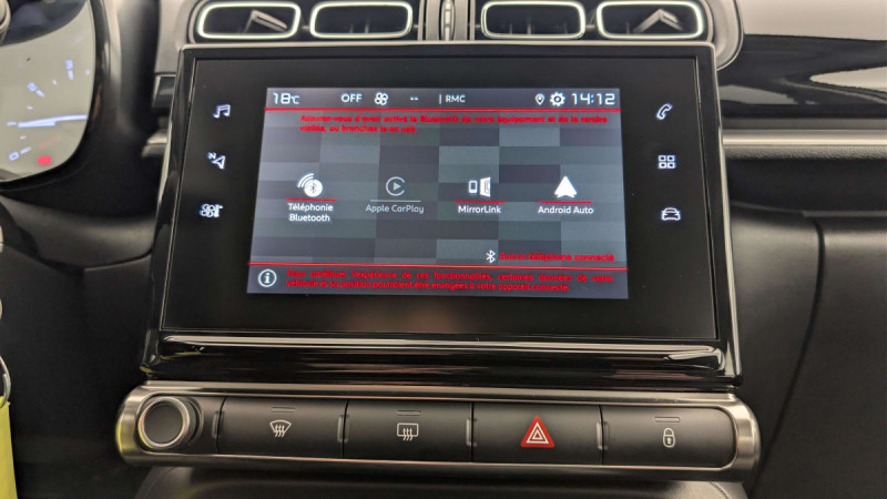 Détection de sous-gonflage / Pack Visibilité : Allumage automatique des feux de croisement Essuie-vitre AV automatique (capteur de pluie) Eclairage d'accueil et d'accompagnement / Lève-vitres AV séquentiels / Pack Safety : Alerte de Franchissement Involontaire de ligne (AFIL) Coffee Break Alert Reconnaissance des panneaux de vitesse Témoin de non-bouclage des ceintures de sécurité conducteur et passagers / Pack Color Noir : Décors d?Airbump et de projecteurs antibrouillard colorés Airbump Black avec gélule Blanc Banquise / MyCitroën Play Mirror Screen, Système audio numérique MP3 6 HP (DAB), Tablette tactile 7'' / Jantes alliage 16" MATRIX Diamantées / Garnissage tissu Mica Grey / ABS avec REF, AFU et ESP / / Véhicules équivalents: 208, Clio, yaris