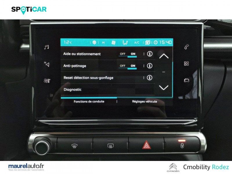 ABS avec REF, AFU et ESP / Accoudoirs de panneaux de portes textile avec sangle / Airbump Black avec ponctuelle colorée / Allumage des feux de détresse en cas de forte décélération / Bandeau de planche de bord Noir Brillant avec cerclage Chrome Satin / Clignotants impulsionnels / Climatisation automatique avec fonction filtrage de l'air / Coques de rétroviseurs couleur pavillon / Décors extérieurs Noir mat / Détection de sous-gonflage / Elargisseurs d'ailes et bas de caisse Noir Mat / Enjoliveurs 3D 16" STEEL & DESIGN / Feux AR à effet 3D / Kit de dépannage provisoire de pneumatiques / Lève-vitres AV séquentiels / Mirror Screen / MyCitroën Play Mirror Screen, Système audio numérique MP3 6 HP (DAB), Tablette tactile 7'' / Pack Color Noir / Pack Safety - Active Safety Brake (Freinage automatique d'urgence) - Alerte active de Franchissement Involontaire de Ligne - Alerte Attention Conducteur - Reconnaissance des panneaux de signalisation - Régulateur-limiteur de vitesse / Pack Visibilité / Pare-soleil avec miroir occultable côtés conducteur et passager / Pavillon bi-ton avec coques de rétroviseurs couleur pavillon et adhésifs de custodes avec motif / Plafonnier AV à lampes avec lecteurs de cartes / Poignées de portes extérieures couleur caisse / Sécurité enfants mécanique / Système audio numérique (DAB) MP3 6 HP / Tissu Mica Grey / Volant moussé