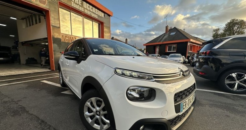 Citroen C3 STE 1.6 BLUEHDI 100CH S&S FEEL, (Société), BLANC, 5cv, 5 portes, mise en circulation le 18-10-2017, première main, garantie 6 mois (GARANTIE COMMERCIALE OFFERTE). 2 places, couleur intérieur : NOIR, longueur : 4,00 mètres, boîte de vitesse : manuelle OPTIONS ET EQUIPEMENTS : Audio - Télécommunications - 4 Haut parleurs - Kit mains-libres Bluetooth - Prise Jack - Prise USB - Radio Conduite - Régulateur de vitesse Extérieur - Enjoliveurs - Essuie-glace arrière - Rétroviseurs électriques Intérieur - Clim manuelle - Porte-gobelets avant - Prise 12V - Siège conducteur réglable en hauteur - Verrouillage centralisé à distance - Vitres avant électriques - Volant réglable en profondeur et hauteur Sécurité - ABS - Airbags rideaux AV et AR - Détecteur de sous-gonflage - ESP - Phares antibrouillard Autres équipements et informations : - Aide au stationnement AR Kilométrage non garanti. Référence annonce : 9968