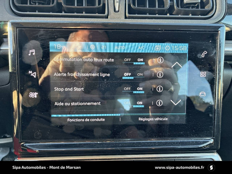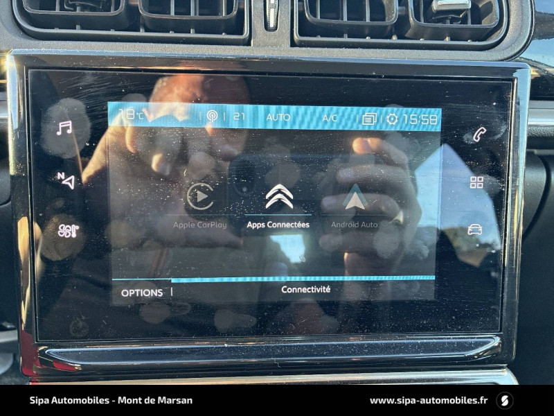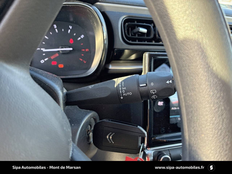 ABS avec REF, AFU et ESP / Bandeau de planche de bord Noir Brillant / Détection de sous-gonflage / Enjoliveurs 15" CLIC / Kit de dépannage provisoire de pneumatiques / Mirror Screen / My Citroën Assist: Citroën Connect Box avec pack SOS et assistance inclus / MyCitroën Drive navigation sur tablette tactile 7'': comprend le système de navigation TomTom, la reconnaissance vocale et durant 3 ans les services MyCitroën Drive (inclut les services « Zones de danger », « Info Trafic », « Stations-service », « Parkings », « Météo » et « Recherche locale ») / Pack Safety 2 / Pack Safety - Active Safety Brake (Freinage automatique d'urgence) - Alerte active de Franchissement Involontaire de Ligne - Alerte Attention Conducteur - Reconnaissance des panneaux de signalisation - Régulateur-limiteur de vitesse / Pack Visibilité / Poignées de portes extérieures couleur caisse / Sans Airbump Black / Suppression des élargisseurs d'ailes et des bas de caisse Noir Mat / Système audio numérique (DAB) MP3 6 HP / Tissu Mica Grey