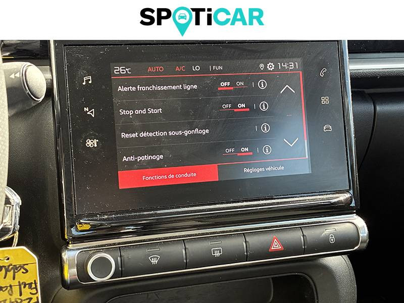 ABS avec REF, AFU et ESP / Airbump Black avec gélule Blanc Banquise / Bandeau de planche de bord Noir Brillant / Citroën Connect Radio sur tablette tactile 7'' / Détection de sous-gonflage / Elargisseurs d'ailes et bas de caisse Noir Mat / Enjoliveurs 3D 16" STEEL & DESIGN / Kit de dépannage provisoire de pneumatiques / Mirror Screen / Pack Color Noir / Pack Safety - Active Safety Brake (Freinage automatique d'urgence) - Alerte active de Franchissement Involontaire de Ligne - Alerte Attention Conducteur - Reconnaissance des panneaux de signalisation - Régulateur-limiteur de vitesse / Poignées de portes extérieures couleur caisse / Système audio numérique (DAB) MP3 6 HP / Tissu Mica Grey