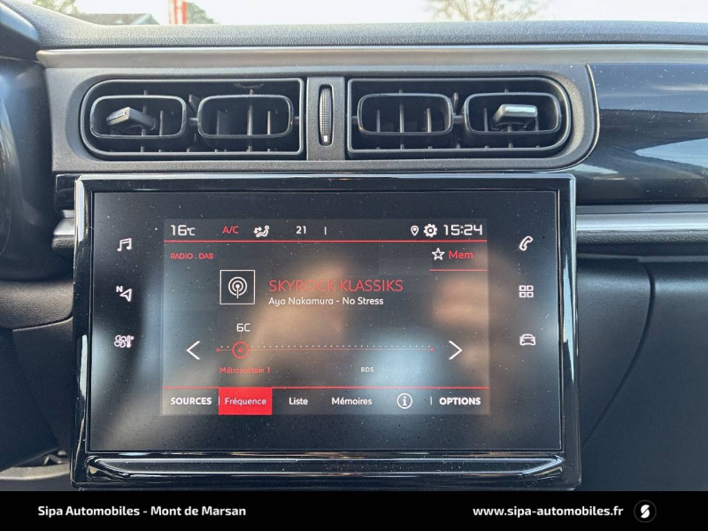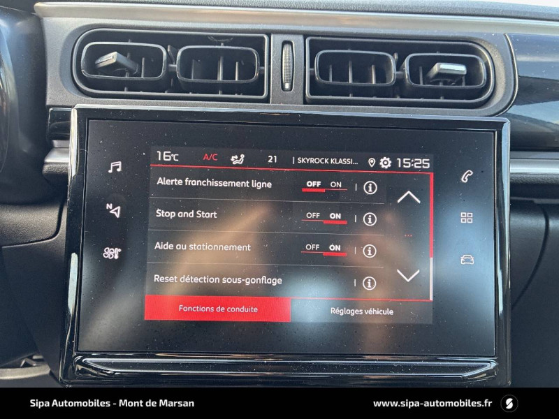 ABS avec REF, AFU et ESP / Airbump Black avec gélule Blanc Banquise / Bandeau de planche de bord Noir Brillant / Détection de sous-gonflage / Elargisseurs d'ailes et bas de caisse Noir Mat / Enjoliveurs 3D 16" STEEL & DESIGN / Garnissage tissu Mica Grey / Kit de dépannage provisoire de pneumatiques / MyCitroën Play Mirror Screen, Système audio numérique MP3 6 HP (DAB), Tablette tactile 7'' / Pack Color Noir / Pack Safety - Active Safety Brake (Freinage automatique d'urgence) - Alerte active de Franchissement Involontaire de Ligne - Alerte Attention Conducteur - Reconnaissance des panneaux de signalisation - Régulateur-limiteur de vitesse / Pack Visibilité / Poignées de portes extérieures couleur caisse