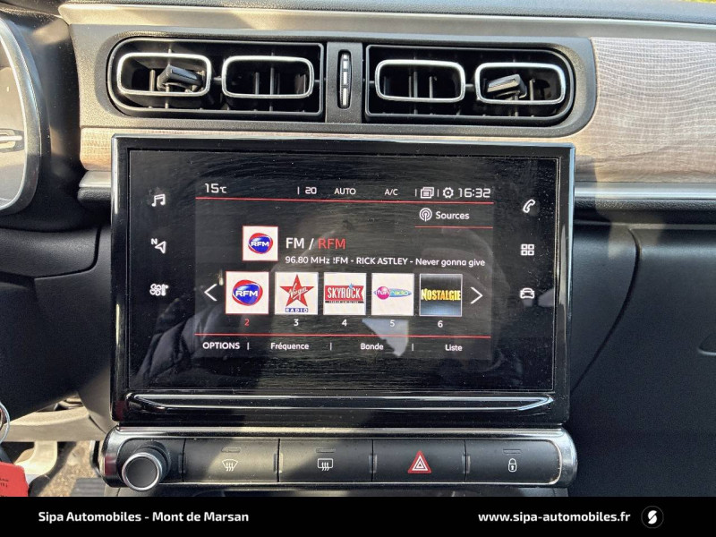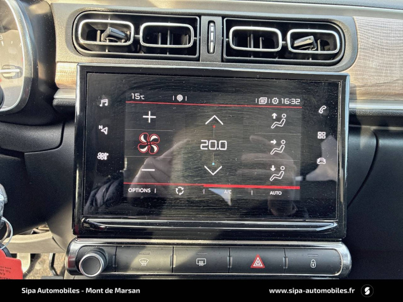 ABS + REF + AFU / Ambiance Techwood / Citroën Connect Nav sur tablette tactile 7'': comprend le système de navigation TomTom, la reconnaissance vocale et durant 3 ans les services Connect Nav (inclut les services « Zones de danger », « Info Trafic », « Stations-service », « Parkings », « Météo » et « Recherche locale ») / Décors extérieurs Noir Brillant / Détection de sous-gonflage / Elargisseurs d'ailes et bas de caisse Noir Mat / Garnissage mixte Tissu Brumeo/Tissu effet cuir Isabella Ambiance Techwood + Sièges Advanced Comfort / Jantes alliage 17" VECTOR diamantées / Kit de dépannage provisoire de pneumatiques / Mirror Screen / Pack Color Noir / Pack Safety - Active Safety Brake (Freinage automatique d'urgence) - Alerte active de Franchissement Involontaire de Ligne - Alerte Attention Conducteur - Reconnaissance des panneaux de signalisation - Régulateur-limiteur de vitesse / Pack Visibilité / Poignées de portes extérieures couleur caisse / Pommeau de levier de vitesse en croûte de cuir / Rétroviseur intérieur électrochrome / Système audio numérique (DAB) MP3 6 HP / Toit Noir Onyx / Volant en croûte de cuir