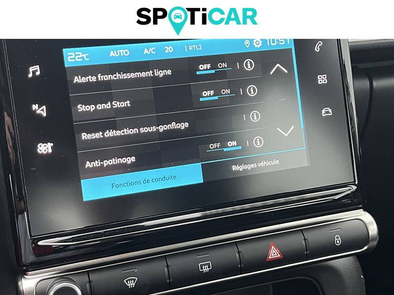 ABS avec REF, AFU et ESP / Airbump Black avec ponctuelle colorée / Allumage des feux de détresse en cas de forte décélération / Bandeau de planche de bord Noir Brillant avec cerclage Chrome Satin / Clignotants impulsionnels / Climatisation automatique avec fonction filtrage de l'air / Décors extérieurs Noir mat / Détection de sous-gonflage / Elargisseurs d'ailes et bas de caisse Noir Mat / Enjoliveurs 3D 16" STEEL & DESIGN / Feux AR à effet 3D / Kit de dépannage provisoire de pneumatiques / Lève-vitres AR manuels / Mirror Screen / MyCitroën Play Mirror Screen, Système audio numérique MP3 6 HP (DAB), Tablette tactile 7'' / Pack Color Noir / Pack Safety / Pare-soleil avec miroir occultable côtés conducteur et passager / Pavillon couleur caisse / Plafonnier AV simple / Poignées de portes extérieures couleur caisse / Sécurité enfants mécanique / Système audio numérique (DAB) MP3 6 HP / Tissu Mica Grey / Volant moussé