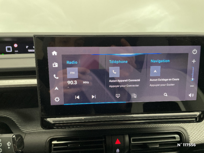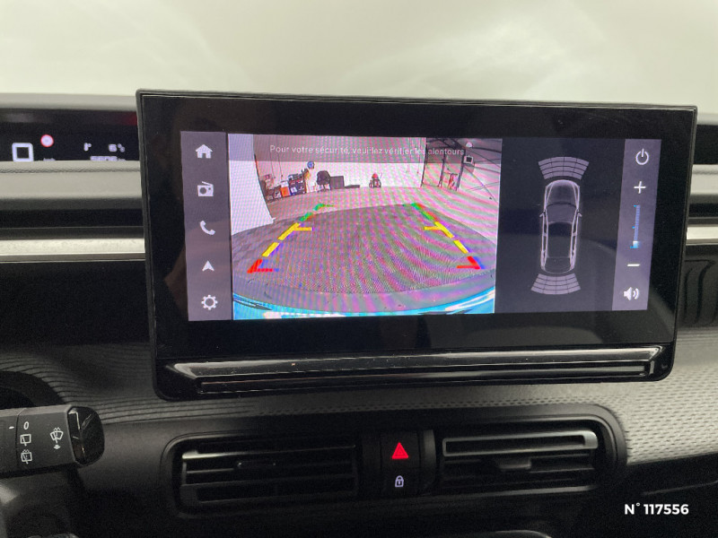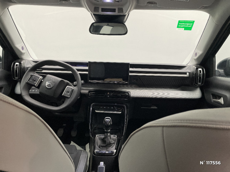 Lève-vitres AR électriques (descente séquentielle) / Station d'accueil Smartphone Radio via smartphone (avec application My Citroën Play), 2 HP en rang 1, Commande de la radio sur le volant / Boîte manuelle 6 rapports / 1 prise USB -C sur la planche de bord (charge rapide 3A) / Lève-vitres AV électriques (descente séquentielle) / Navigation 3D sur écran central 10,25" tactile / Citroën Head up Display (affichage tête haute) - TFT / Suspension Citroën Advanced Comfort / Ambiance Metropolitan Grey avec Sièges Advanced Comfort / Navigation 3D sur écran central 10,25'' tactile Apple CarPlay et Android Auto sans fil, Système audio numérique 6 HP (DAB) / Recharge sans fil pour smartphone / Boîtier télématique : Appel d'urgence et Citroën Assistance les services Connect ONE pendant une période de 10 ans / Poignées de portes extérieures Noir Brillant / AFU, REF / Garnissage Tissu Noir / Tissu City / Toile enduite Claire avec Sièges Advanced Comfort / Garnissage Tissu Noir / Tissu City / Toile enduite Claire avec Sièges Advanced Comfort. Avec les décors sur les panneaux de portes AV/AR et sur la planche de bord Gris Sidérite, les lève-vitres AR électriques (descente séquentielle), le siège conducteur réglable en hauteur, les appui-têtes AV réglables en hauteur, les accoudoirs de porte AV et AR recouverts de textile moussé avec étiquettes 'Happy Tags» (messages positifs), et des poches aumônières au dos des sièges AV / ABS, ESP, TCS / Boîte automatique 6 rapports / Pack Safety - Active Safety Brake (Freinage automatique d'urgence) - Alerte active de Franchissement Involontaire de Ligne - Alerte Attention Conducteur - Reconnaissance des panneaux de signalisation - Régulateur-limiteur de vitesse - Alerte Risque Collision / Elargisseurs d'ailes Noir Mat / 1 prise USB -C sur la planche de bord + 2 prises USB-C en rang 2 (charge rapide 3A) / Détection de sous-gonflage / Sabots de protection AV et AR / 2 Prises USB type-C (charge rapide 3A) en rang 2 / Ecran central 10,25 " tactile: Apple CarPlay et Android Auto sans fil Système audio 6 HPs (DAB) / Barres de toit Noir Brillant / Rétroviseur intérieur électrochrome / Essuie-vitre AV automatique (capteur de pluie) / Décors extérieurs Noir Brillant / Témoin de non-bouclage des ceintures de sécurité conducteur et passagers / ABS avec REF, AFU et ESP / Pack Safety - Active Safety Brake (Freinage automatique d'urgence) - Alerte active de Franchissement Involontaire de Ligne - Alerte Attention Conducteur - Reconnaissance des panneaux de signalisation - Régulateur-limiteur de vitesse / Jantes alliage 17" Atacamite diamantées