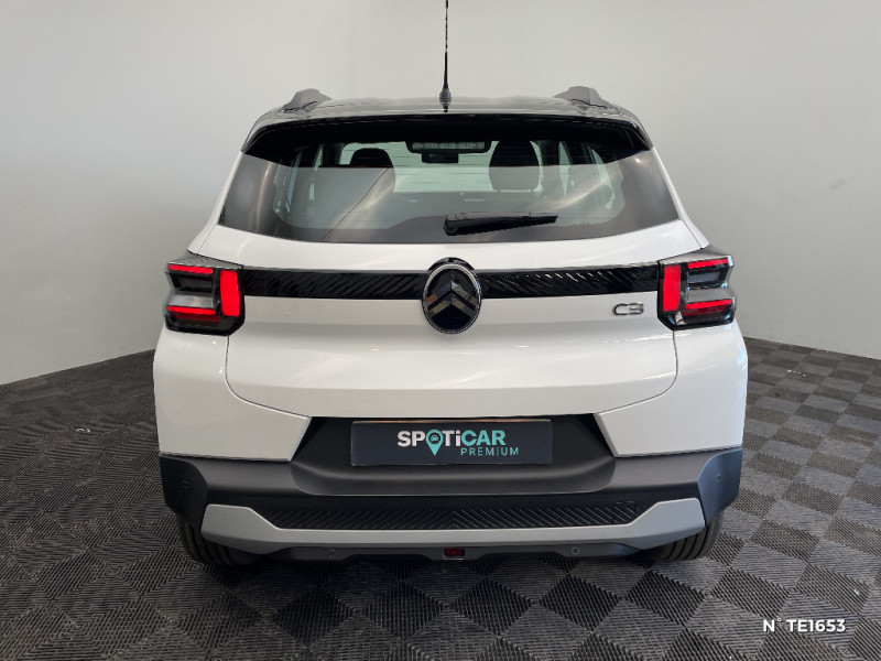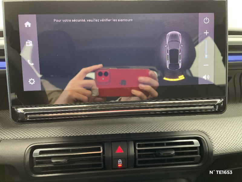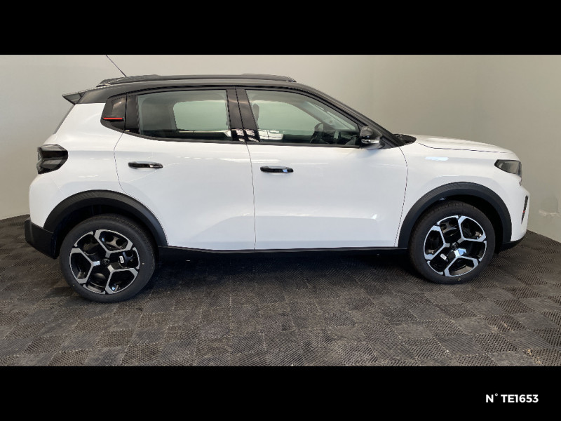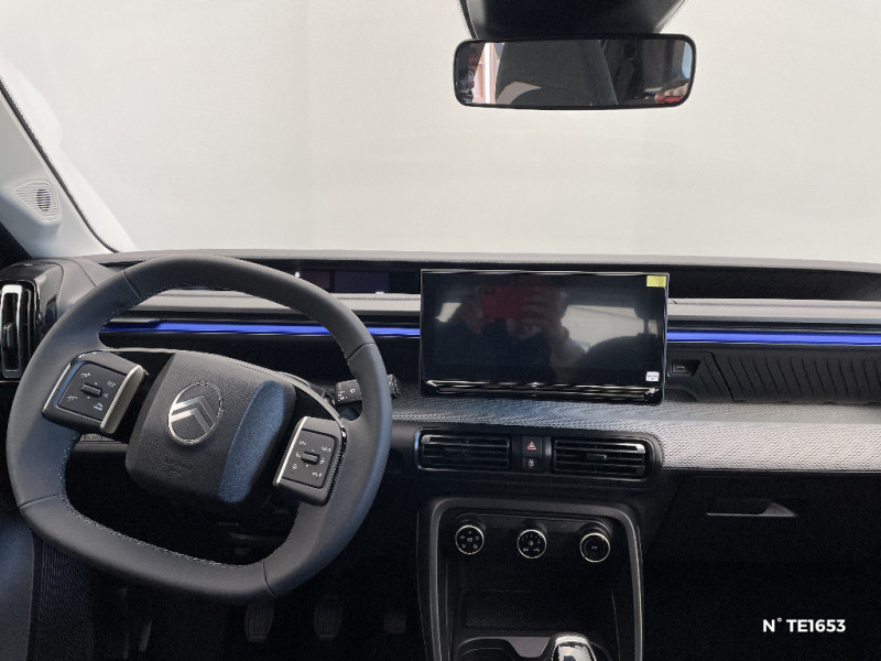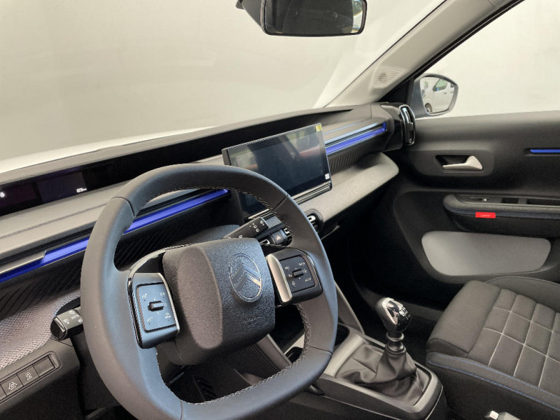 Station d'accueil Smartphone Radio via smartphone (avec application My Citroën Play), 2 HP en rang 1, Commande de la radio sur le volant / Suspension Citroën Advanced Comfort / Témoin de non-bouclage des ceintures de sécurité conducteur et passagers / Essuie-vitre AV automatique (capteur de pluie) / Enjoliveurs 17" AZURITE / Elargisseurs d'ailes Noir Mat / Détection de sous-gonflage / Décors extérieurs Noir Brillant / Citroën Head up Display (affichage tête haute) - TFT / Boîtier télématique: Appel d'urgence et Citroën Assistance les services Connect ONE pendant une période de 10 ans / Barres de toit Noir Brillant / Ambiance Urban Grey avec Sièges Advanced Comfort / ABS avec REF, AFU et ESP / Sabots de protection AV et AR / 2 Prises USB type-C (charge rapide 3A) en rang 2 / Poignées de portes extérieures Noir Brillant / Pack Safety - Active Safety Brake (Freinage automatique d'urgence) - Alerte active de Franchissement Involontaire de Ligne - Alerte Attention Conducteur - Reconnaissance des panneaux de signalisation - Régulateur-limiteur de vitesse - Alerte Risque Collision / Navigation 3D sur écran central 10,25'' tactile Apple CarPlay et Android Auto sans fil, Système audio numérique 6 HP (DAB) / Lève-vitres AV électriques (descente séquentielle) / Kit de dépannage provisoire des pneumatiques / Garnissage Tissu Noir / Tissu Asphalt avec Sièges Advanced Comfort. Comprend les décors sur les panneaux de portes AV/ AR et sur la planche de bord Ultra Blue, le siège conducteur réglable en hauteur, les appui-têtes AV réglables en hauteur, les accoudoirs de porte AV et AR recouverts de textile moussé avec étiquettes ' Happy Tags » (messages positifs), et des poches aumônières au dos des sièges AV