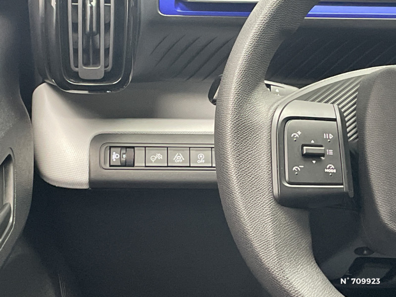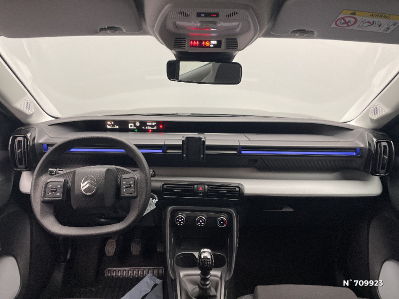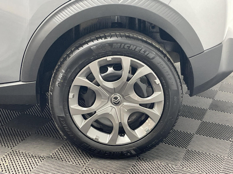 Coques de rétroviseurs extérieurs Noir Mat / Elargisseurs d'ailes Noir Mat / Suspension Citroën Advanced Comfort / Lève-vitres AV électriques (descente séquentielle) / Boîtier télématique: Appel d'urgence et Citroën Assistance les services Connect ONE pendant une période de 10 ans / Témoin et alerte de non-bouclage des ceintures AV et de débouclage AV et AR / Lève-vitres AR manuels / Volant moussé / Ambiance You - Appui-têtes AV intégrés, - Décors sur les panneaux de porte avant Ultra Blue, - Décors sur la planche de bord Ultra Blue / Décors extérieurs Noir Mat (enjoliveurs de montant central et custode) / Toit Monoton / Enjoliveurs 16" Pyrite / Station d'accueil Smartphone Radio via smartphone (avec application My Citroën Play), 2 HP en rang 1, Commande de la radio sur le volant / Roues 16" avec enjoliveurs PYRITE / Pack Safety - Active Safety Brake (Freinage automatique d'urgence) - Alerte active de Franchissement Involontaire de Ligne - Alerte Attention Conducteur - Reconnaissance des panneaux de signalisation - Régulateur-limiteur de vitesse / ABS, ESP / Boîte manuelle 6 rapports / Garnissage Tissu Noir / Tissu Gris Chiné / AFU, REF / Citroën Head up Display (affichage tête haute) - LCD / Poignées de portes extérieures Noir Mat / 1 prise USB -C sur la planche de bord (charge rapide 3A) / Détection de sous-gonflage