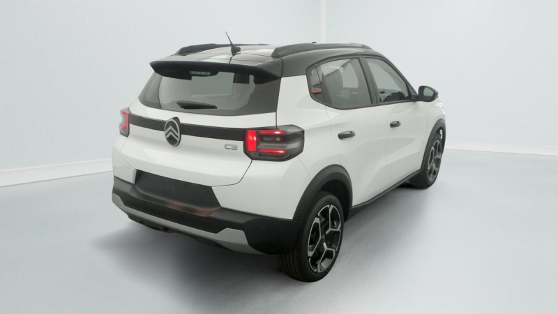 Véhicule livré sans Kit anti crevaison ni roue de secours / Détection de sous-gonflage / Tablette AR cache-bagages / Barres de toit Noir Brillant / Témoin de non-bouclage des ceintures de sécurité conducteur et passagers / ABS, AFU, ESP, REF / Poignées de portes extérieures Noir Brillant / Recharge sans fil pour smartphone / Suspension Citroën Advanced Comfort / 1 Prise USB-C sur la planche de bord + 2 USB type C en rang 2 (charge rapide 3A)) / Citroën Head up Display (affichage tête haute) - TFT / Lève-vitres AV électriques (descente séquentielle) / Navigation 3D sur écran 10,25' tactile Apple CarPlay et Android Auto sans fil, Système audio 6 HP (DAB), Commande de la radio sur le volant / Enjoliveur 17" AZURITE / Garnissage Tissu Noir / tissu Asphalt avec Ambiance Urban Grey + Sièges Advanced Comfort - comprend les décors sur les panneaux de portes AV/AR et sur la planche de bord Ultra Blue, le siège conducteur réglable en hauteur, les appui-têtes AV réglables en hauteur, les accoudoirs de porte AV et AR recouverts de textile moussé avec étiquettes « Happy Tags » (messages positifs), et des poches aumônières au dos des sièges AV / Pack Safety : Alerte de Franchissement Involontaire de ligne (AFIL) Régulateur - limiteur de vitesse Alerte attention conducteur Reconnaissance des panneaux de signalisation Active Safety Brake (Freinage automatique d'urgence) / Boîte manuelle 6 vitesses / Essuie-vitres AV automatique (capteur de pluie) / / Véhicules équivalents: 208, Clio, yaris