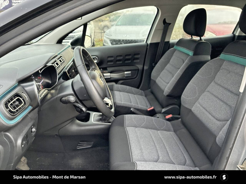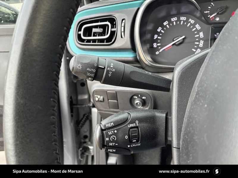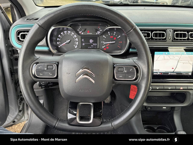 ABS + REF + AFU / Bandeau de planche de bord Noir Brillant avec cerclage Chrome Satin / Citroën Connect Nav sur tablette tactile 7'': comprend le système de navigation TomTom, la reconnaissance vocale et durant 3 ans les services Connect Nav (inclut les services « Zones de danger », « Info Trafic », « Stations-service », « Parkings », « Météo » et « Recherche locale ») / Clignotants impulsionnels / Climatisation automatique avec fonction filtrage de l'air / Coques de rétroviseurs couleur pavillon / Décors extérieurs Noir Brillant / Détection de sous-gonflage / Elargisseurs d'ailes et bas de caisse / Feux AR à effet 3D / Jantes alliage 16" MATRIX diamantées / Kit de dépannage provisoire de pneumatiques / Lève-vitres AR manuels / Mirror Screen / Pack Color Noir / Pack Safety - Active Safety Brake (Freinage automatique d'urgence) - Alerte active de Franchissement Involontaire de Ligne - Alerte Attention Conducteur - Reconnaissance des panneaux de signalisation - Régulateur-limiteur de vitesse / Pack Visibilité / Pare-soleil avec miroir occultable côtés conducteur et passager / Pavillon bi-ton avec coques de rétroviseurs couleur pavillon et adhésifs de custodes avec motif / Plafonnier AV à lampes avec lecteurs de cartes / Poignées de portes extérieures couleur caisse / Sécurité enfants mécanique / Système audio numérique (DAB) MP3 6 HP / Tissu Mica Grey / Toit Noir Onyx / Volant en croûte de cuir