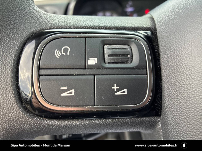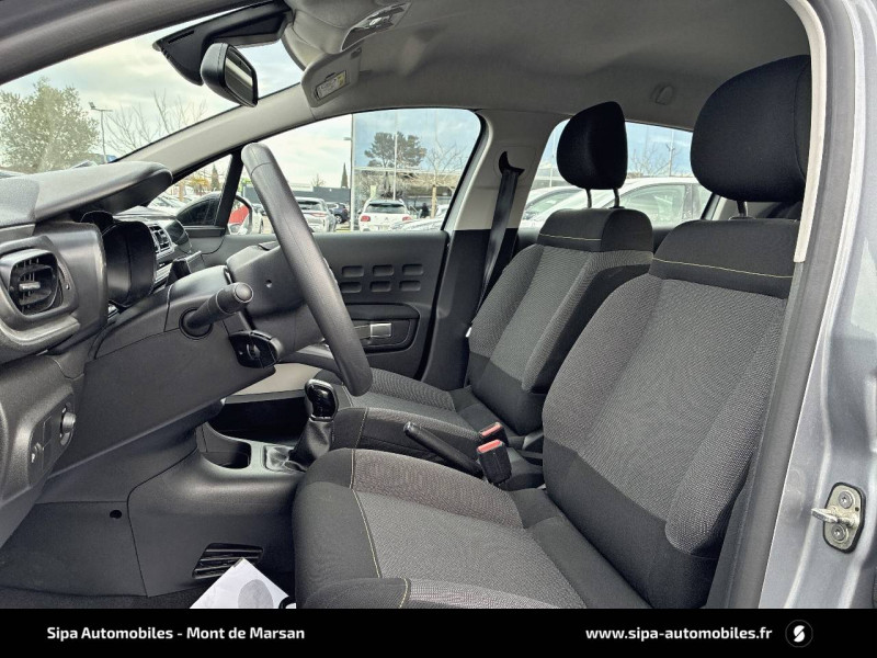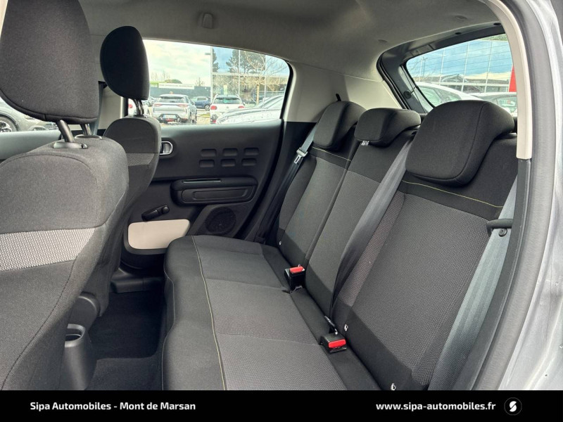 ABS avec REF, AFU et ESP / Bandeau de planche de bord Noir Brillant / Détection de sous-gonflage / Enjoliveurs 15" CLIC / Kit de dépannage provisoire de pneumatiques / Mirror Screen / My Citroën Assist: Citroën Connect Box avec pack SOS et assistance inclus / MyCitroën Drive navigation sur tablette tactile 7'': comprend le système de navigation TomTom, la reconnaissance vocale et durant 3 ans les services MyCitroën Drive (inclut les services « Zones de danger », « Info Trafic », « Stations-service », « Parkings », « Météo » et « Recherche locale ») / Pack Safety 2 / Pack Safety - Active Safety Brake (Freinage automatique d'urgence) - Alerte active de Franchissement Involontaire de Ligne - Alerte Attention Conducteur - Reconnaissance des panneaux de signalisation - Régulateur-limiteur de vitesse / Pack Visibilité / Poignées de portes extérieures couleur caisse / Sans Airbump Black / Suppression des élargisseurs d'ailes et des bas de caisse Noir Mat / Système audio numérique (DAB) MP3 6 HP / Tissu Mica Grey