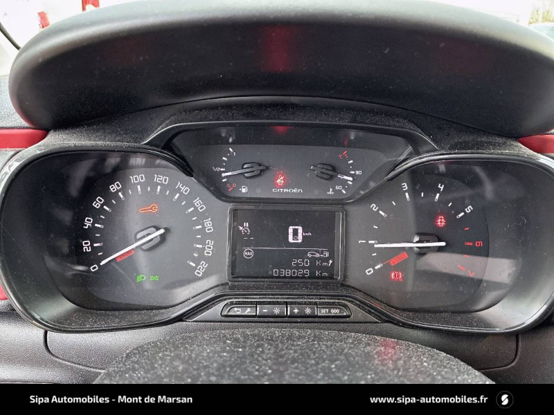 ABS avec REF, AFU et ESP / Ambiance intérieure C-Series: Tissu Curitiba Gris avec la bande en haut du dossier en Tissu Triton Rouge, bandeau de plancher de bord gainé TEP Alba avec surpiqûres Blanches et cerclage Anodised Deep Red, et surtapis AV et AR spécifiques / Citroën Connect Radio sur tablette tactile 7'' / Détection de sous-gonflage / Elargisseurs d'ailes et bas de caisse Noir Mat / Jantes alliage 16" MATRIX diamantées / Kit de dépannage provisoire de pneumatiques / Lève-vitres AV séquentiels / Mirror Screen / Pack Safety - Active Safety Brake (Freinage automatique d'urgence) - Alerte active de Franchissement Involontaire de Ligne - Alerte Attention Conducteur - Reconnaissance des panneaux de signalisation - Régulateur-limiteur de vitesse / Pack Visibilité / Personnalisation extérieure C-Series: badges C-Series sur les portes AV, décor central de toit spécifique, Pack Color Anodised Deep Red et les adhésifs de custode spécifiques / Poignées de portes extérieures couleur caisse / Système audio numérique (DAB) MP3 6 HP