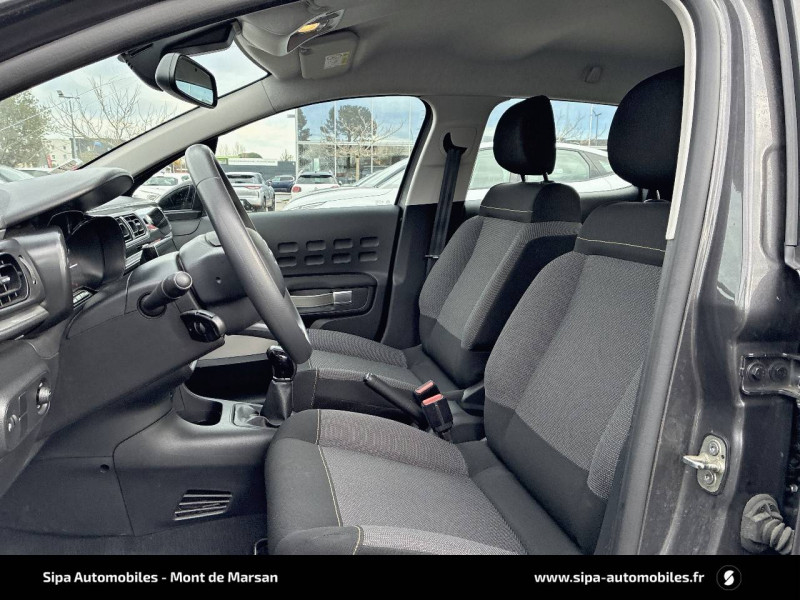 ABS avec REF, AFU et ESP / Bandeau de planche de bord Noir Brillant / Détection de sous-gonflage / Enjoliveurs 15" CLIC / Kit de dépannage provisoire de pneumatiques / Mirror Screen / My Citroën Assist: Citroën Connect Box avec pack SOS et assistance inclus / MyCitroën Drive navigation sur tablette tactile 7'': comprend le système de navigation TomTom, la reconnaissance vocale et durant 3 ans les services MyCitroën Drive (inclut les services « Zones de danger », « Info Trafic », « Stations-service », « Parkings », « Météo » et « Recherche locale ») / Pack Safety 2 / Pack Safety - Active Safety Brake (Freinage automatique d'urgence) - Alerte active de Franchissement Involontaire de Ligne - Alerte Attention Conducteur - Reconnaissance des panneaux de signalisation - Régulateur-limiteur de vitesse / Pack Visibilité / Poignées de portes extérieures couleur caisse / Sans Airbump Black / Suppression des élargisseurs d'ailes et des bas de caisse Noir Mat / Système audio numérique (DAB) MP3 6 HP / Tissu Mica Grey