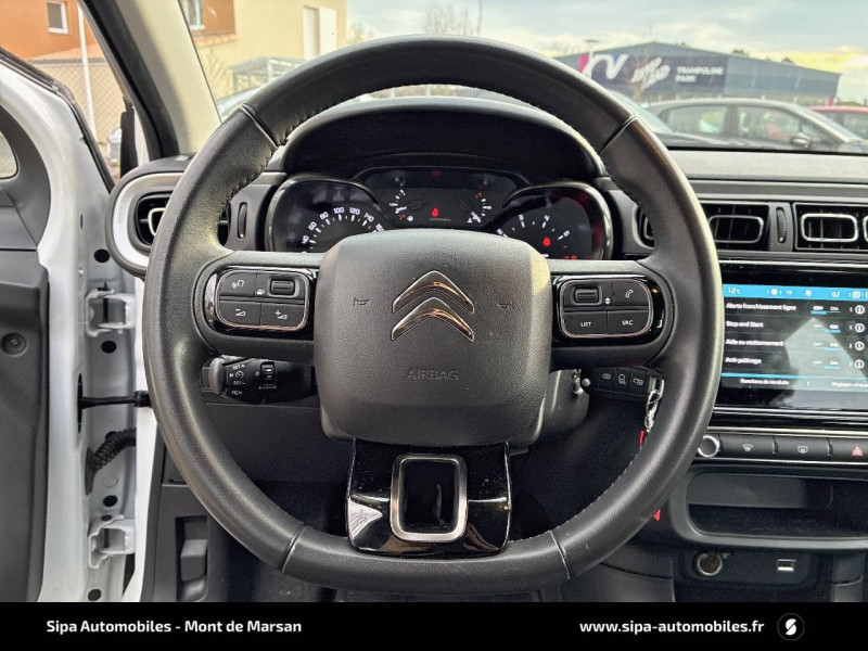 ABS avec REF, AFU et ESP / Airbump Black avec gélule Blanc Banquise / Bandeau de planche de bord Noir Brillant / Détection de sous-gonflage / Elargisseurs d'ailes et bas de caisse Noir Mat / Enjoliveurs 3D 16" STEEL & DESIGN / Kit de dépannage provisoire de pneumatiques / Mirror Screen / MyCitroën Drive navigation sur tablette tactile 7'': comprend le système de navigation TomTom, la reconnaissance vocale et durant 3 ans les services MyCitroën Drive (inclut les services « Zones de danger », « Info Trafic », « Stations-service », « Parkings », « Météo » et « Recherche locale ») / Pack Color Noir / Pack Safety - Active Safety Brake (Freinage automatique d'urgence) - Alerte active de Franchissement Involontaire de Ligne - Alerte Attention Conducteur - Reconnaissance des panneaux de signalisation - Régulateur-limiteur de vitesse / Pack Visibilité / Poignées de portes extérieures couleur caisse / Système audio numérique (DAB) MP3 6 HP / Tissu Mica Grey / Volant en croûte de cuir