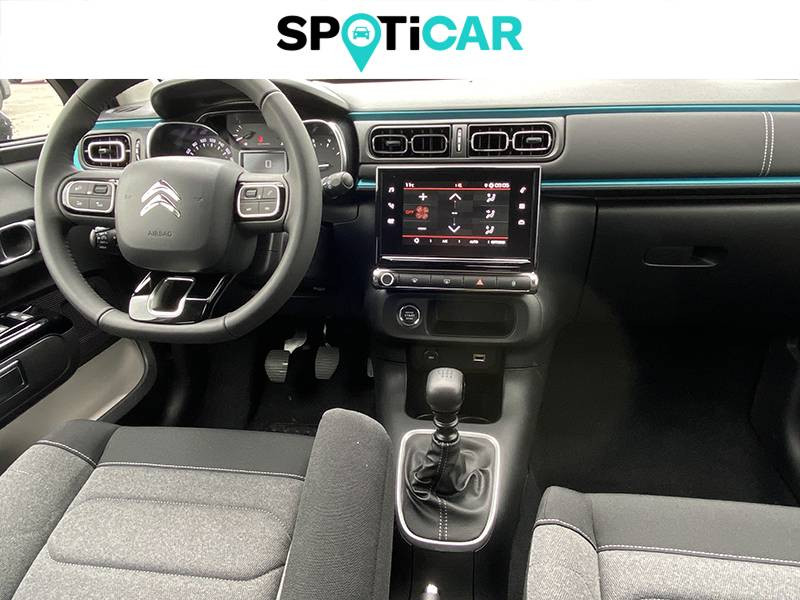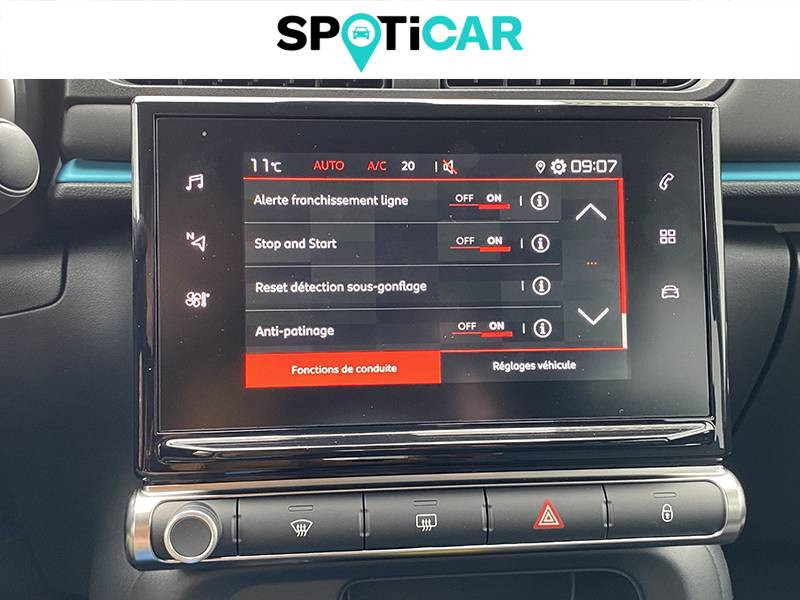 ABS + REF + AFU / Bandeau de planche de bord Noir Brillant avec cerclage Chrome Satin / Citroën Connect Nav sur tablette tactile 7'': comprend le système de navigation TomTom, la reconnaissance vocale et durant 3 ans les services Connect Nav (inclut les services « Zones de danger », « Info Trafic », « Stations-service », « Parkings », « Météo » et « Recherche locale ») / Clignotants impulsionnels / Climatisation automatique avec fonction filtrage de l'air / Coques de rétroviseurs couleur pavillon / Décors extérieurs Noir Brillant / Détection de sous-gonflage / Elargisseurs d'ailes et bas de caisse / Feux AR à effet 3D / Jantes alliage 16" MATRIX diamantées / Kit de dépannage provisoire de pneumatiques / Lève-vitres AR manuels / Mirror Screen / Pack Color Noir / Pack Safety - Active Safety Brake (Freinage automatique d'urgence) - Alerte active de Franchissement Involontaire de Ligne - Alerte Attention Conducteur - Reconnaissance des panneaux de signalisation - Régulateur-limiteur de vitesse / Pack Visibilité / Pare-soleil avec miroir occultable côtés conducteur et passager / Pavillon bi-ton avec coques de rétroviseurs couleur pavillon et adhésifs de custodes avec motif / Plafonnier AV à lampes avec lecteurs de cartes / Poignées de portes extérieures couleur caisse / Sécurité enfants mécanique / Système audio numérique (DAB) MP3 6 HP / Tissu Mica Grey / Toit Noir Onyx / Volant en croûte de cuir