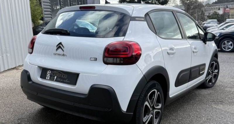 Citroen C3 1.2 PURETECH 83CH S&S C-SERIES 123G, (Berline), BLANC, 4cv, 5 portes, mise en circulation le 23-02-2023, garantie 3 mois (3 MOIS). 5 places, longueur : 4,00 mètres, boîte de vitesse : manuelle OPTIONS ET EQUIPEMENTS : Audio - Télécommunications - 6 Haut parleurs - Ecran tactile - Fonction MP3 - Interface Media - Kit mains-libres Bluetooth - Prise USB - Radio numérique DAB Conduite - Aide au démarrage en côte - Allumage des phares automatique - Capteur de pluie - Follow me home - Limiteur de vitesse - Régulateur de vitesse Extérieur - Enjoliveurs - Feux de jour à LED - Poignées ton carrosserie - Rétroviseurs dégivrants - Rétroviseurs rabattables électriquement - Rétroviseurs électriques Intérieur - Banquette 1/3-2/3 - Banquette AR rabattable - Banquette arrière 3 places - Clim automatique - Ecran multifonction couleur - Ordinateur de bord - Ouverture des vitres séquentielle - Siège conducteur réglable en hauteur - Verrouillage centralisé des portes - Verrouillage centralisé à distance - Vitres arrière électriques - Vitres avant électriques - Volant réglable en profondeur et hauteur Sécurité - ABS - AFIL - Aide au freinage d'urgence - Airbag conducteur - Airbag passager - Airbags latéraux avant - Airbags rideaux AV et AR - Détecteur de sous-gonflage - ESP - Phares antibrouillard - Reconnaissance panneaux de signalisation - Répartiteur électronique de freinage - Témoin de bouclage des ceintures AV Autres équipements et informations : - Tissu Mica Grey Kilométrage garanti. Référence annonce : 11002