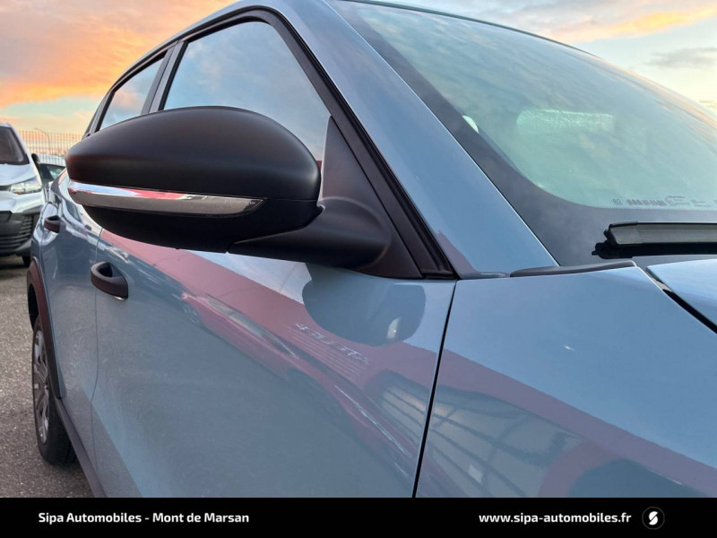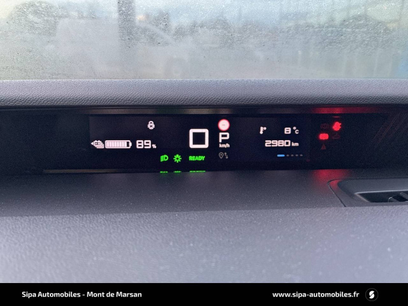 1 prise USB -C sur la planche de bord (charge rapide 3A) / ABS, ESP, TCS / AFU, REF / Allumage des feux de détresse en cas de forte décélération / Ambiance You - Appui-têtes AV intégrés, - Décors sur les panneaux de porte avant Ultra Blue, - Décors sur la planche de bord Ultra Blue / Application e-ROUTES (Planificateur de voyage intelligent) via Pack Connect Plus Gratuit pendant une période d'essai de 12 mois / Avertisseur Sonore Piéton / Boîte automatique 1 vitesse / Boîtier télématique: Appel d'urgence et Citroën Assistance les services Connect ONE pendant une période de 10 ans / Câble de charge Mode 3 (Wall Box) pour prise de charge T2 / Chargeur embarqué 7.4 kW monophasé / Citroën Head up Display (affichage tête haute) - TFT / Clignotants impulsionnels / Coques de rétroviseurs extérieurs Noir Mat / Décors extérieurs Noir Mat (enjoliveurs de montant central et custode) / Détection de sous-gonflage / Eclairage d'accueil et d'accompagnement / Elargisseurs d'ailes Noir Mat / Enjoliveurs 16" Pyrite / E-Remote : Contrôle de la charge (pour une période d'essai de 12 mois) / Fixations ISOFIX sur les deux places latérales AR avec 2 points d'encrage / Garnissage Tissu Noir / Tissu Gris Chiné / Lève-vitres AR manuels / Lève-vitres AV électriques (descente séquentielle) / Pack Safety - Active Safety Brake (Freinage automatique d'urgence) - Alerte active de Franchissement Involontaire de Ligne - Alerte Attention Conducteur - Reconnaissance des panneaux de signalisation - Régulateur-limiteur de vitesse / Plafonnier AV simple à lampe / Poignées de portes extérieures Noir Mat / Recharge rapide en courant continu de 100 kW (borne publique) / Sécurité enfants mécanique / Services Connect PLUS pendant 12 mois / Station d'accueil Smartphone Radio via smartphone (avec application My Citroën Play), 2 HP en rang 1, Commande de la radio sur le volant / Suspension Citroën Advanced Comfort / Témoin et alerte de non-bouclage des ceintures AV et de débouclage AV et AR / Toit Monoton / Volant moussé
