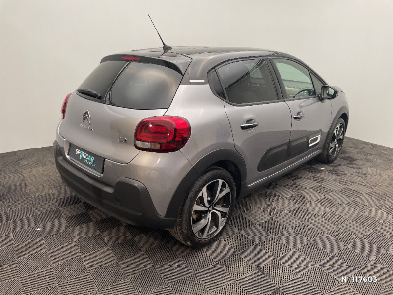 Garnissage tissu Mica Grey / Allumage des feux de détresse en cas de forte décélération / Climatisation automatique avec fonction filtrage de l'air / Pare-soleil avec miroir occultable côtés conducteur et passager / Mirror Screen / Airbump Black avec gélule Blanc Banquise / Lève-vitres AV séquentiels / Pack Visibilité / Elargisseurs d?ailes et bas de caisse Noir Mat / Poignées de portes extérieures couleur caisse / Pack Safety / Jantes alliage 16" MATRIX Diamantées / MyCitroën Play Mirror Screen, Système audio numérique MP3 6 HP (DAB), Tablette tactile 7'' / Airbump Black avec ponctuelle colorée / Pavillon bi-ton avec coques de rétroviseurs couleur pavillon et adhésifs de custodes avec motif / Kit de dépannage provisoire de pneumatiques / Décors extérieurs Noir Brillant / Décors extérieurs Noir mat / Plafonnier AV à lampes avec lecteurs de cartes / Sécurité enfants mécanique / Clignotants impulsionnels / ABS avec REF, AFU et ESP / Feux AR à effet 3D / Accoudoirs de panneaux de portes textile avec sangle / Détection de sous-gonflage / Coques de rétroviseurs couleur pavillon / Tissu Mica Grey / Bandeau de planche de bord Noir Brillant avec cerclage Chrome Satin / Volant moussé / Enjoliveurs 3D 16" STEEL & DESIGN / Pack Color Noir / Bandeau de planche de bord Noir Brillant / Système audio numérique (DAB) MP3 6 HP / Pommeau de levier de vitesse en croûte de cuir