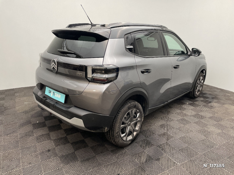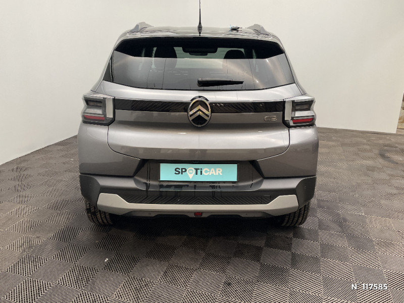 Eclairage d?accueil et d'accompagnement / Rétroviseur intérieur électrochrome / Commutation automatique des feux de route / Station d'accueil Smartphone Radio via smartphone (avec application My Citroën Play), 2 HP en rang 1, Commande de la radio sur le volant / Citroën Head up Display (affichage tête haute) - TFT / Garnissage Tissu Noir / Tissu City / Toile enduite Claire avec Sièges Advanced Comfort. Avec les décors sur les panneaux de portes AV/AR et sur la planche de bord Gris Sidérite, les lève-vitres AR électriques (descente séquentielle), le siège conducteur réglable en hauteur, les appui-têtes AV réglables en hauteur, les accoudoirs de porte AV et AR recouverts de textile moussé avec étiquettes «Happy Tags» (messages positifs), et des poches aumônières au dos des sièges AV / Barres de toit Noir Brillant / Pack Safety - Active Safety Brake (Freinage automatique d?urgence) - Alerte active de Franchissement Involontaire de Ligne - Alerte Attention Conducteur - Reconnaissance des panneaux de signalisation - Régulateur-limiteur de vitesse - Alerte Risque Collision / Ambiance Metropolitan Grey avec Sièges Advanced Comfort / Décors extérieurs Noir Brillant / Navigation 3D sur écran central 10,25?? tactile Apple CarPlay et Android Auto sans fil, Système audio numérique 6 HP (DAB) / Essuie-vitre AV automatique (capteur de pluie) / Suspension Citroën Advanced Comfort / Détection de sous-gonflage / Ecran central 10,25 " tactile: Apple CarPlay et Android Auto sans fil Système audio 6 HPs (DAB) / Décors extérieurs Noir Brillant (enjoliveurs de montant central et custode) / Fixations ISOFIX sur les deux places latérales AR avec 3 points d'encrage / Témoin et alerte de non-bouclage des ceintures AV et de débouclage AV et AR / 1 prise USB -C sur la planche de bord (charge rapide 3A) / Sabots de protection AV et AR / Boîte automatique 6 rapports / Boîte manuelle 6 rapports / Recharge sans fil pour smartphone / Sécurité enfants mécanique / Clignotants impulsionnels / ABS avec REF, AFU et ESP / Miroir de courtoisie sur les pare-soleils conducteur et passager (occultable côté conducteur) / Plafonnier AV à LED avec lecteurs de cartes / Ambiance Metropolitan Grey - Accoudoirs de porte AV et AR recouverts de textile moussé avec étiquette "Happy Tags" (messages positifs), - Appui-têtes AV réglables en hauteur, - Décors sur les panneaux de porte AV Gris Sidérite, - Décors sur la planche de bord Gris Sidérite, - Poches aumônières et poches supplémentaires pour smartphone au dos des sièges AV / Garnissage Tissu Noir / Tissu City / Toile enduite Claire avec Sièges Advanced Comfort / AFU, REF / Système audio numérique MP3 6 HP (DAB) / Boîtier télématique : Appel d?urgence et Citroën Assistance les services Connect ONE pendant une période de 10 ans / ABS, ESP, TCS / Jantes alliage 17" Atacamite diamantées / Lève-vitres AR électriques (descente séquentielle) / Poignées de portes extérieures Noir Brillant / 1 prise USB -C sur la planche de bord + 2 prises USB-C en rang 2 (charge rapide 3A) / 2 Prises USB type-C (charge rapide 3A) en rang 2 / Lève-vitres AV électriques (descente séquentielle) / Allumage des feux de détresse en cas de forte décélération / Navigation 3D sur écran central 10,25" tactile / Pack Safety - Active Safety Brake (Freinage automatique d?urgence) - Alerte active de Franchissement Involontaire de Ligne - Alerte Attention Conducteur - Reconnaissance des panneaux de signalisation - Régulateur-limiteur de vitesse / Elargisseurs d'ailes Noir Mat / Témoin de non-bouclage des ceintures de sécurité conducteur et passagers
