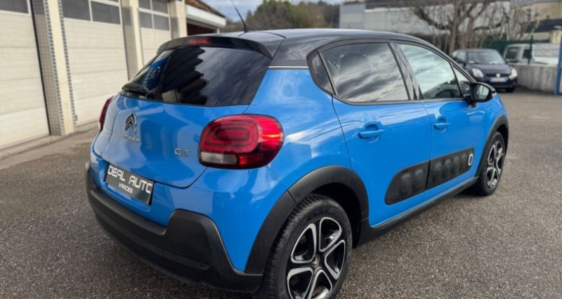 Citroen C3 PureTech 110ch Shine S&S E6.d-TEMP, (Berline), Cobalt Blue - Noir Onyx, 5cv, 5 portes, mise en circulation le 07-08-2017, première main, garantie 6 mois. 5 places, longueur : 4,00 mètres, poids en charge 1600 Kg, boîte de vitesse : manuelle OPTIONS ET EQUIPEMENTS : Audio - Télécommunications - Commandes du système audio au volant - Connect Radio sur tablette tactile 7 - Mirror Screen - Apple CarPlay / Android Auto Conduite - Aide au démarrage en côte - Arrêt et redémarrage auto. du moteur - Limiteur de vitesse - Pack Visibilité - Régulateur de vitesse Extérieur - Aide au stationnement arrière - Enjoliveurs 3D 16 - Feux arrière à LED - Feux de freinage d'urgence - Feux de jour à LED - Phares halogènes - Poignées ton carrosserie - Répétiteurs de clignotant dans rétro ext - Rétroviseurs dégivrants - Rétroviseurs électriques Intérieur - Banquette 1/3-2/3 - Banquette AR rabattable - Banquette arrière 3 places - Boite à gants fermée - Clim automatique - Fixation Isofix siège passager avant - Fixations Isofix aux places arrières - Lampes de lecture à l'avant - Ordinateur de bord - Pommeau de levier vitesse en cuir - Prise 12V - Siège conducteur réglable en hauteur - Verrouillage centralisé des portes - Verrouillage centralisé à distance - Vitres arrière électriques - Vitres avant électriques - Volant cuir - Volant réglable en profondeur et hauteur Sécurité - ABS - Aide au freinage d'urgence - Airbag conducteur - Airbag passager - Airbags latéraux avant - Airbags rideaux AV et AR - Antidémarrage électronique - Détecteur de sous-gonflage - EBD - ESP - Pack Safety - Projecteurs antibrouillard - Troisième ceinture de sécurité - Témoin de bouclage ceinture conducteur - Témoin de bouclage des ceintures AV Autres équipements et informations : - Blanc Banquise - Noir Onyx - Airbump Black - Elargisseurs d'ailes et bas de caisse - Tissu Mica Grey Ideal Auto Varces 34 rue du Peuil 38760 Varces