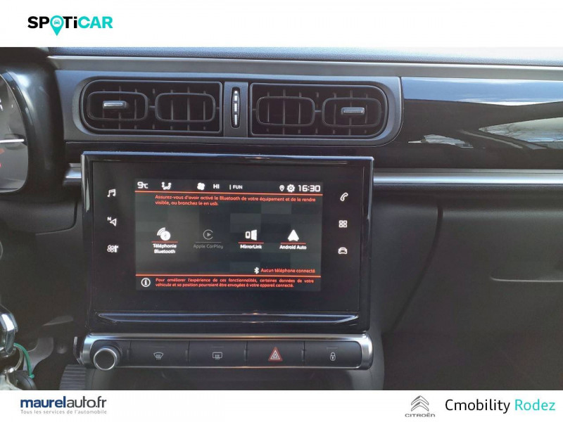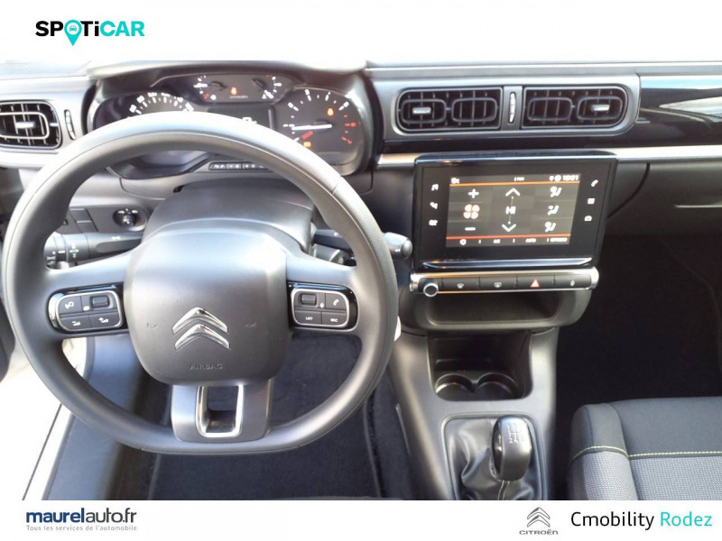 ABS avec REF, AFU et ESP / Airbump Black avec ponctuelle colorée / Allumage des feux de détresse en cas de forte décélération / Bandeau de planche de bord Noir Brillant avec cerclage Chrome Satin / Clignotants impulsionnels / Climatisation automatique avec fonction filtrage de l'air / Décors extérieurs Noir mat / Détection de sous-gonflage / Elargisseurs d'ailes et bas de caisse Noir Mat / Enjoliveurs 3D 16" STEEL & DESIGN / Feux AR à effet 3D / Kit de dépannage provisoire de pneumatiques / Lève-vitres AR manuels / Mirror Screen / MyCitroën Play Mirror Screen, Système audio numérique MP3 6 HP (DAB), Tablette tactile 7'' / Pack Color Noir / Pack Safety - Active Safety Brake (Freinage automatique d'urgence) - Alerte active de Franchissement Involontaire de Ligne - Alerte Attention Conducteur - Reconnaissance des panneaux de signalisation - Régulateur-limiteur de vitesse / Pare-soleil avec miroir occultable côtés conducteur et passager / Pavillon couleur caisse / Plafonnier AV simple / Poignées de portes extérieures couleur caisse / Sécurité enfants mécanique / Système audio numérique (DAB) MP3 6 HP / Tissu Mica Grey / Volant moussé