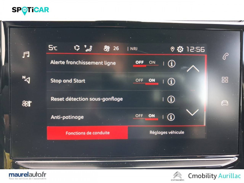 ABS avec REF, AFU et ESP / Airbump Black avec gélule Blanc Banquise / Bandeau de planche de bord Noir Brillant / Détection de sous-gonflage / Elargisseurs d'ailes et bas de caisse Noir Mat / Enjoliveurs 3D 16" STEEL & DESIGN / Garnissage tissu Mica Grey / Kit de dépannage provisoire de pneumatiques / MyCitroën Play Mirror Screen, Système audio numérique MP3 6 HP (DAB), Tablette tactile 7'' / Pack Color Noir / Pack Safety - Active Safety Brake (Freinage automatique d'urgence) - Alerte active de Franchissement Involontaire de Ligne - Alerte Attention Conducteur - Reconnaissance des panneaux de signalisation - Régulateur-limiteur de vitesse / Pack Visibilité / Poignées de portes extérieures couleur caisse