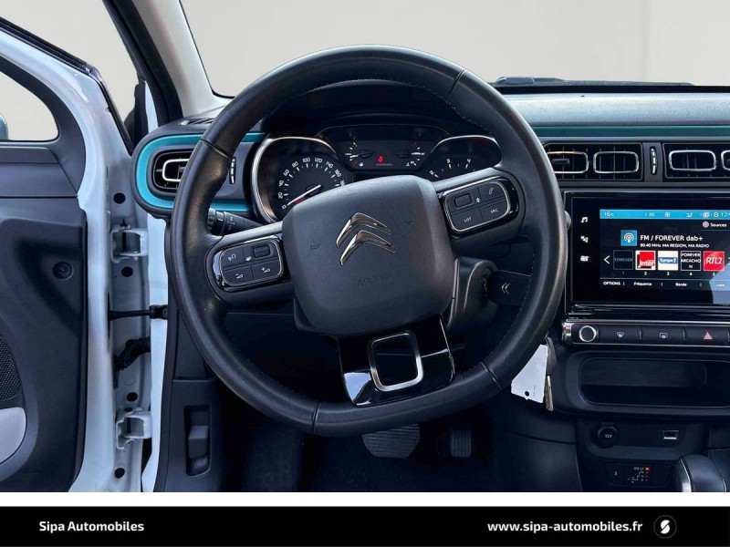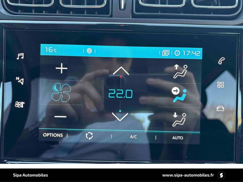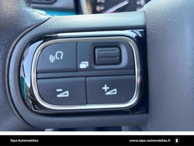 ABS + REF + AFU / Bandeau de planche de bord Noir Brillant avec cerclage Chrome Satin / Citroën Connect Nav sur tablette tactile 7'': comprend le système de navigation TomTom, la reconnaissance vocale et durant 3 ans les services Connect Nav (inclut les services « Zones de danger », « Info Trafic », « Stations-service », « Parkings », « Météo » et « Recherche locale ») / Clignotants impulsionnels / Climatisation automatique avec fonction filtrage de l'air / Coques de rétroviseurs couleur pavillon / Décors extérieurs Noir Brillant / Détection de sous-gonflage / Elargisseurs d'ailes et bas de caisse / Feux AR à effet 3D / Jantes alliage 16" MATRIX diamantées / Kit de dépannage provisoire de pneumatiques / Lève-vitres AR manuels / Mirror Screen / Pack Color Noir / Pack Safety - Active Safety Brake (Freinage automatique d'urgence) - Alerte active de Franchissement Involontaire de Ligne - Alerte Attention Conducteur - Reconnaissance des panneaux de signalisation - Régulateur-limiteur de vitesse / Pack Visibilité / Pare-soleil avec miroir occultable côtés conducteur et passager / Pavillon bi-ton avec coques de rétroviseurs couleur pavillon et adhésifs de custodes avec motif / Plafonnier AV à lampes avec lecteurs de cartes / Poignées de portes extérieures couleur caisse / Pommeau de levier de vitesse en croûte de cuir / Sécurité enfants mécanique / Système audio numérique (DAB) MP3 6 HP / Tissu Mica Grey / Toit Noir Onyx / Volant en croûte de cuir