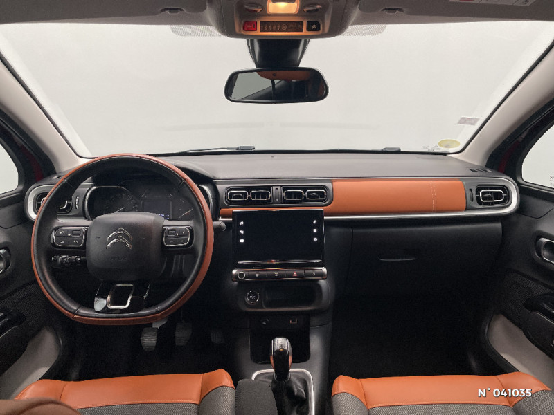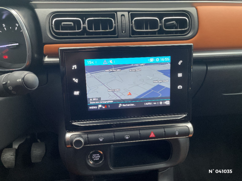 Jantes alliage 16" MATRIX diamantées / Allumage des feux de détresse en cas de forte décélération / Climatisation automatique avec fonction filtrage de l'air / Lève-vitres AR manuels / Pare-soleil avec miroir occultable côtés conducteur et passager / Système audio numérique MP3 6 HP (DAB) / Coques de rétroviseurs couleur pavillon / Elargisseurs d?ailes et bas de caisse / Feux AR à effet 3D / Accoudoirs de panneaux de portes textile avec sangle / Bandeau de planche de bord Noir Brillant avec cerclage Chrome Satin / Pack Color Noir / Pavillon bi-ton avec coques de rétroviseurs couleur pavillon et adhésifs de custodes avec motif / ABS + REF + AFU / Poignées de portes extérieures couleur caisse / Kit de dépannage provisoire de pneumatiques / Détection de sous-gonflage / Pack Visibilité / Décors extérieurs Noir Brillant / Toit bi-ton Noir Onyx / Plafonnier AV avec lecteur de carte / Sécurité enfants mécanique / Clignotants impulsionnels / Volant en croute de cuir / Pack Safety / Mirror Screen / GarnissageTissu Mica Grey / Citroën Connect Nav sur tablette tactile 7'': comprend le système de navigation TomTom, la reconnaissance vocale et durant 3 ans les services Connect Nav (inclut les services « Zones de danger », « Info Trafic », « Stations-service », « Parkings », « Météo » et « Recherche locale »)