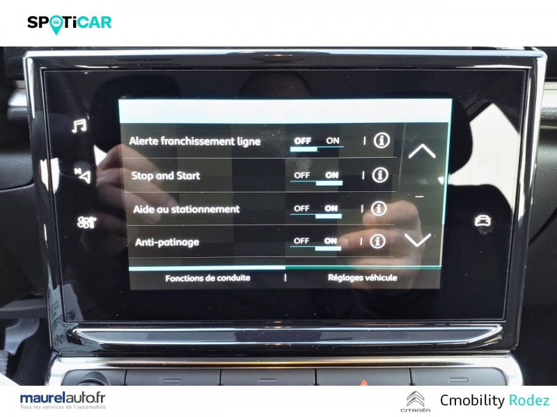 ABS avec REF, AFU et ESP / Airbump Black avec gélule Blanc Banquise / Bandeau de planche de bord Noir Brillant / Détection de sous-gonflage / Elargisseurs d'ailes et bas de caisse Noir Mat / Enjoliveurs 3D 16" STEEL & DESIGN / Kit de dépannage provisoire de pneumatiques / Mirror Screen / MyCitroën Drive navigation sur tablette tactile 7'': comprend le système de navigation TomTom, la reconnaissance vocale et durant 3 ans les services MyCitroën Drive (inclut les services « Zones de danger », « Info Trafic », « Stations-service », « Parkings », « Météo » et « Recherche locale ») / Pack Color Noir / Pack Safety - Active Safety Brake (Freinage automatique d'urgence) - Alerte active de Franchissement Involontaire de Ligne - Alerte Attention Conducteur - Reconnaissance des panneaux de signalisation - Régulateur-limiteur de vitesse / Pack Visibilité / Poignées de portes extérieures couleur caisse / Système audio numérique (DAB) MP3 6 HP / Tissu Mica Grey / Volant en croûte de cuir