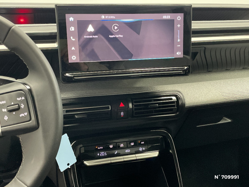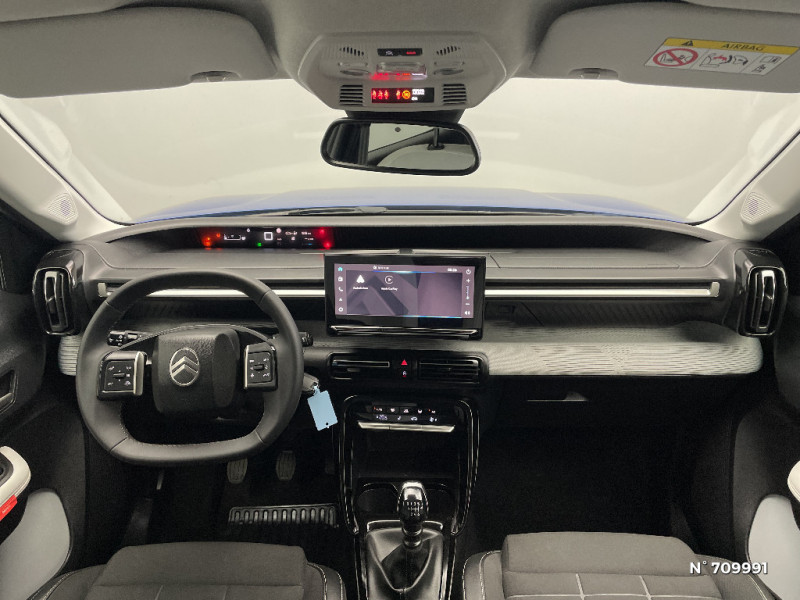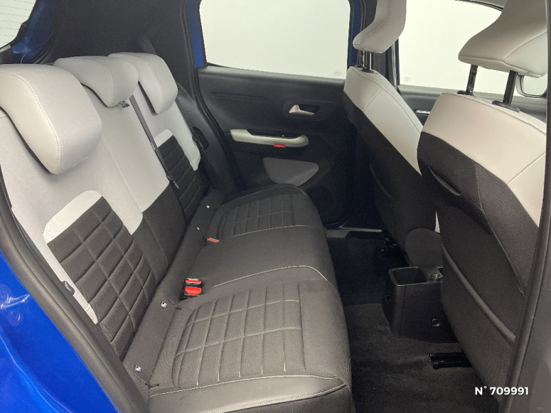 AFU, REF / 2 Prises USB type-C (charge rapide 3A) en rang 2 / Ambiance Metropolitan Grey - Accoudoirs de porte AV et AR recouverts de textile moussé avec étiquette "Happy Tags" (messages positifs), - Appui-têtes AV réglables en hauteur, - Décors sur les panneaux de porte AV Gris Sidérite, - Décors sur la planche de bord Gris Sidérite, - Poches aumônières et poches supplémentaires pour smartphone au dos des sièges AV / Barres de toit Noir Brillant / Boîte manuelle 6 rapports / Boîtier télématique: Appel d'urgence et Citroën Assistance les services Connect ONE pendant une période de 10 ans / Citroën Head up Display (affichage tête haute) - TFT / Commutation automatique des feux de route / Décors extérieurs Noir Brillant (enjoliveurs de montant central et custode) / Détection de sous-gonflage / Ecran central 10,25 " tactile: Système audio 6 HPs (DAB). Apple CarPlay et Android Auto sans fil / Elargisseurs d'ailes Noir Mat / Enjoliveurs 17" AZURITE / Essuie-vitre AV automatique (capteur de pluie) / Garnissage Tissu Noir / Tissu City / Toile enduite Claire avec Sièges Advanced Comfort / Jantes alliage 17" Atacamite diamantées / Lève-vitres AR électriques (descente séquentielle) / ABS, ESP / Lève-vitres AV électriques (descente séquentielle) / Navigation 3D Connecté sur écran central 10,25" tactile / Pack Safety - Active Safety Brake (Freinage automatique d'urgence) - Alerte active de Franchissement Involontaire de Ligne - Alerte Attention Conducteur - Reconnaissance des panneaux de signalisation - Régulateur-limiteur de vitesse / Poignées de portes extérieures Noir Brillant / Recharge sans fil pour smartphone / Rétroviseur intérieur électrochrome / Sabots de protection AV et AR / Suspension Citroën Advanced Comfort / TCS (Contrôle de la traction) / Témoin et alerte de non-bouclage des ceintures AV et de débouclage AV et AR / 1 prise USB -C sur la planche de bord (charge rapide 3A)