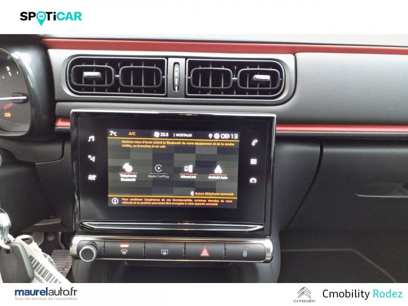 ABS avec REF, AFU et ESP / Accoudoirs de panneaux de portes textile avec sangle / Airbump Black avec ponctuelle colorée / Allumage des feux de détresse en cas de forte décélération / Bandeau de planche de bord en Tissu effet cuir Alba avec cerclage Chrome Satin / Clignotants impulsionnels / Climatisation automatique avec fonction filtrage de l'air / Coques de rétroviseurs Noir Perla Nera / Décors extérieurs Noir mat / Détection de sous-gonflage / Elargisseurs d'ailes et bas de caisse Noir Mat / Feux AR à effet 3D / Jantes alliage 16" MATRIX diamantées / Kit de dépannage provisoire de pneumatiques / Lève-vitres AR manuels / Mirror Screen / MyCitroën Play Mirror Screen, Système audio numérique MP3 6 HP (DAB), Tablette tactile 7'' / Pack Color Bronze Anodisé / Pack Safety - Active Safety Brake (Freinage automatique d'urgence) - Alerte active de Franchissement Involontaire de Ligne - Alerte Attention Conducteur - Reconnaissance des panneaux de signalisation - Régulateur-limiteur de vitesse / Pack Visibilité / Pare-soleil avec miroir occultable côtés conducteur et passager / Pavillon couleur caisse / Personnalisation extérieure C-Series: badges C-Series sur les portes AV, décor central de toit spécifique, Pack Color Anodised Deep Red et les adhésifs de custode spécifiques / Plafonnier AV simple / Poignées de portes extérieures couleur caisse / Sécurité enfants mécanique / Système audio numérique (DAB) MP3 6 HP / Tissu Mica Grey / Volant moussé